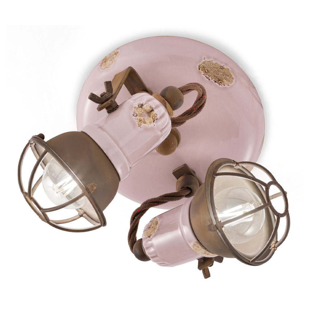 Llamba tavani 2 prozhektore ne dizenjo industriale qeramike dhe hekuri e prodhuar ne Itali nga Ferroluce.