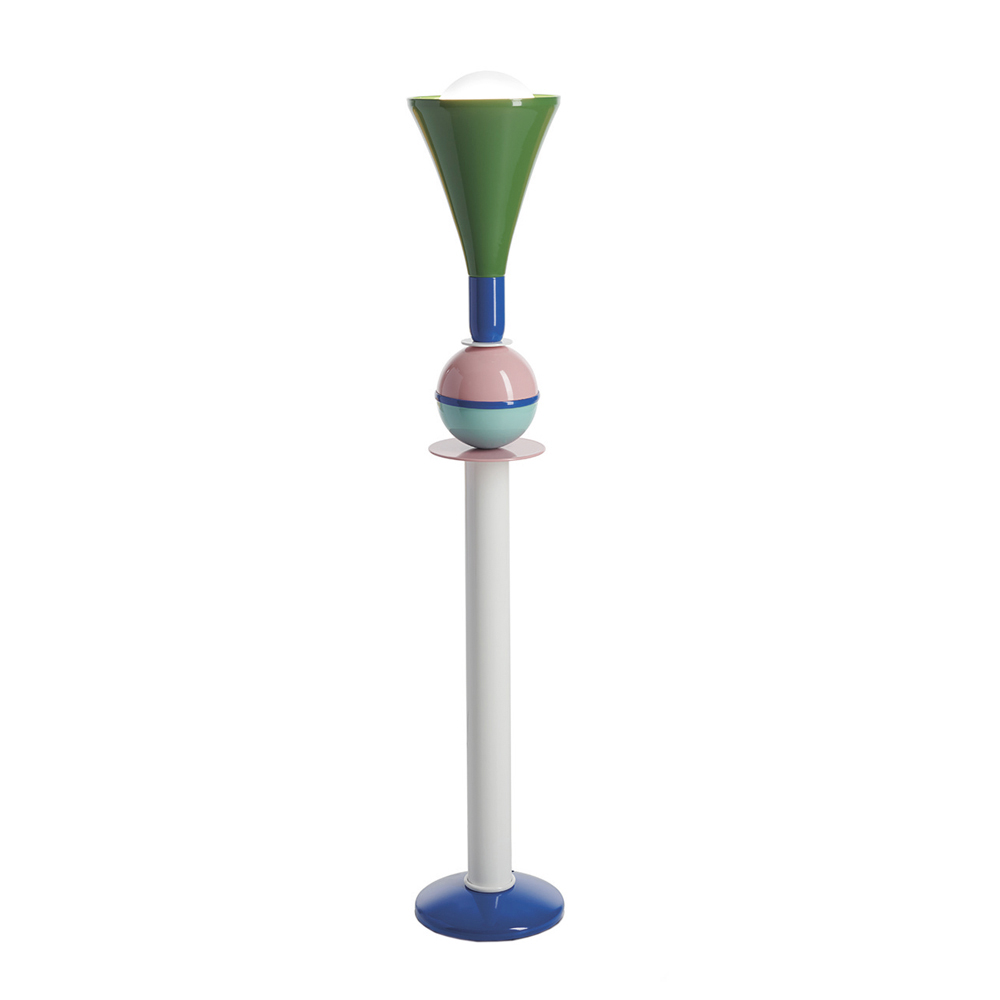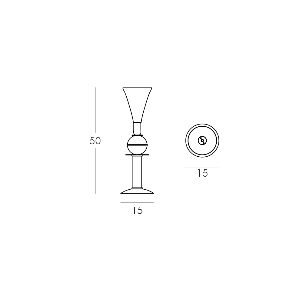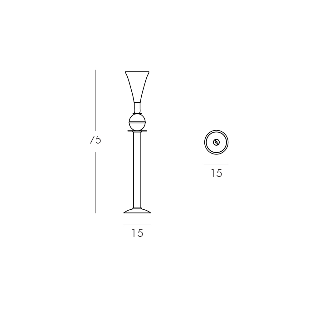 Prodhuar në Itali nga mjeshtër ekspertë që ndjekin faza të veçanta të përpunimit, është prej alumini me ngjyrë dhe i përbërë nga forma të holla dhe ngjyra të buta. Abazhuri e drejton dritën lart për një rezultat të një drite të butë dhe të përthyer. Mundësia për të zgjedhur dy masa të ndryshme: