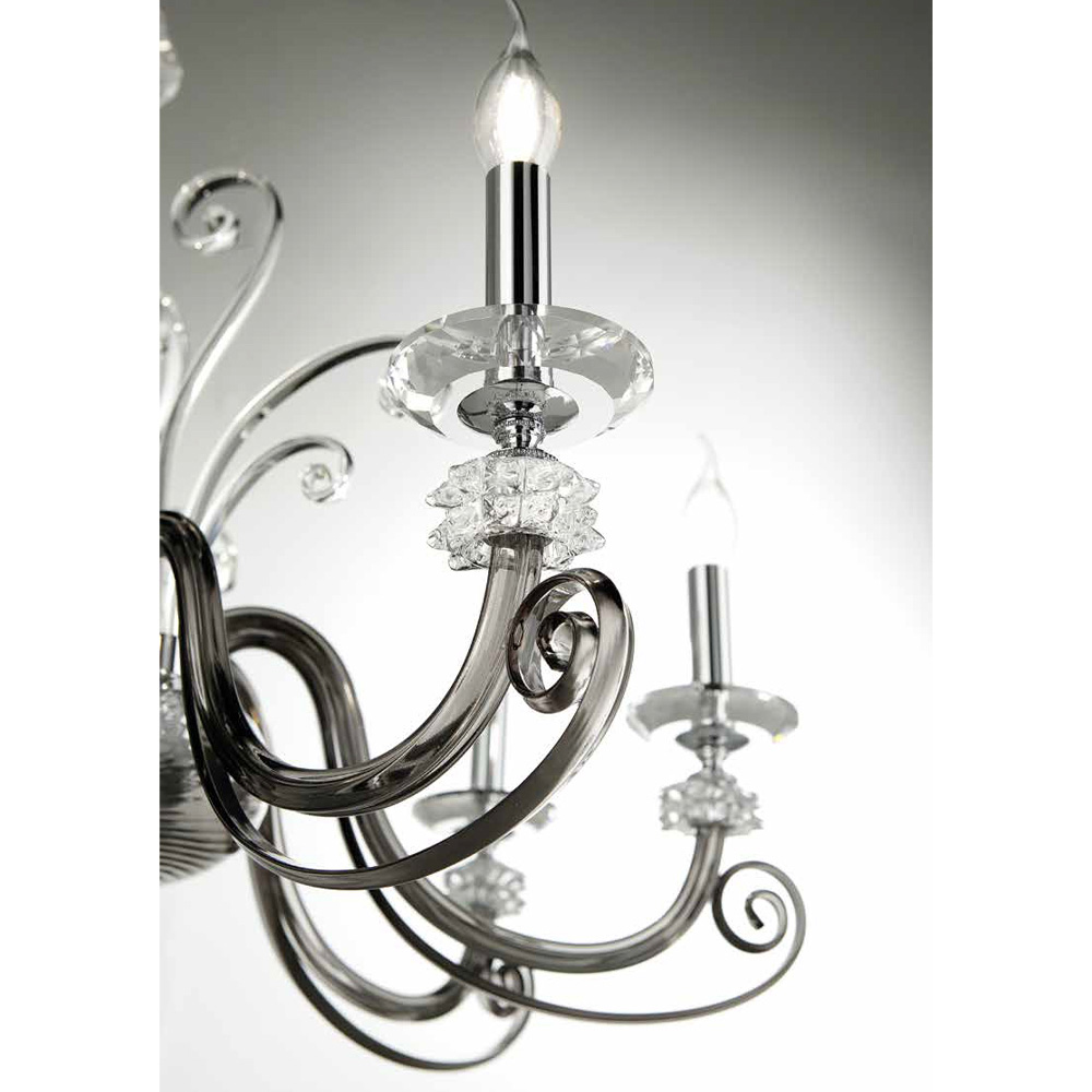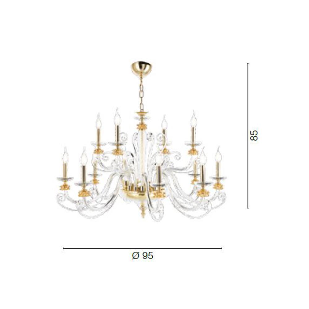 Llambadar 12 dritash i punuar me dorë në xham të fryrë dhe kristal optik, luks i prodhuar në Itali.