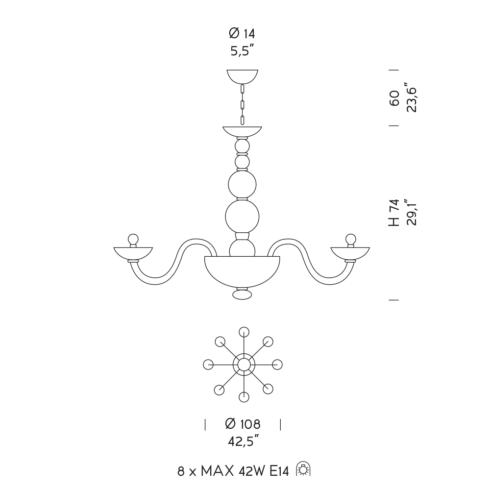 Llamba (nuk përfshihen) : 8 x MAX 42W E14