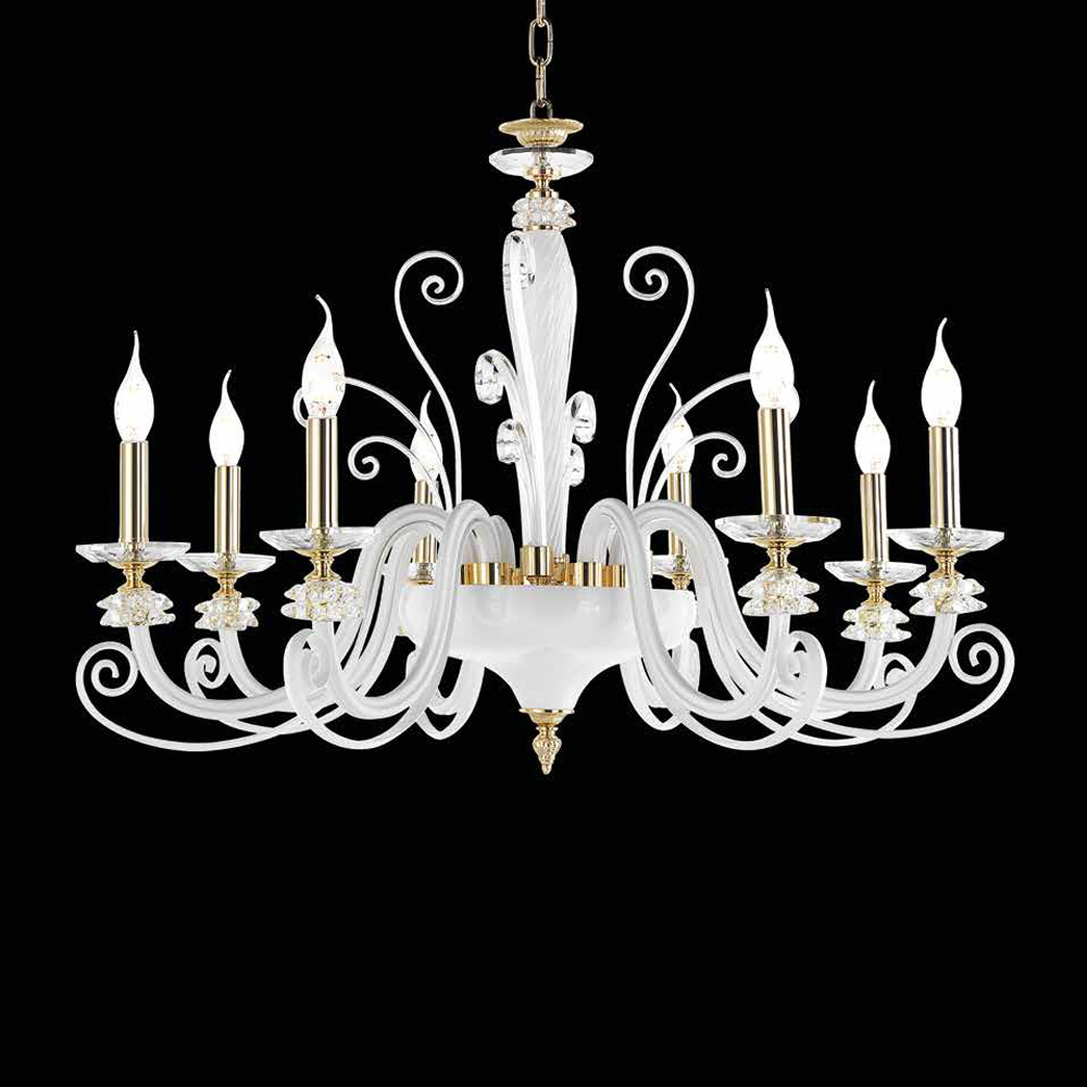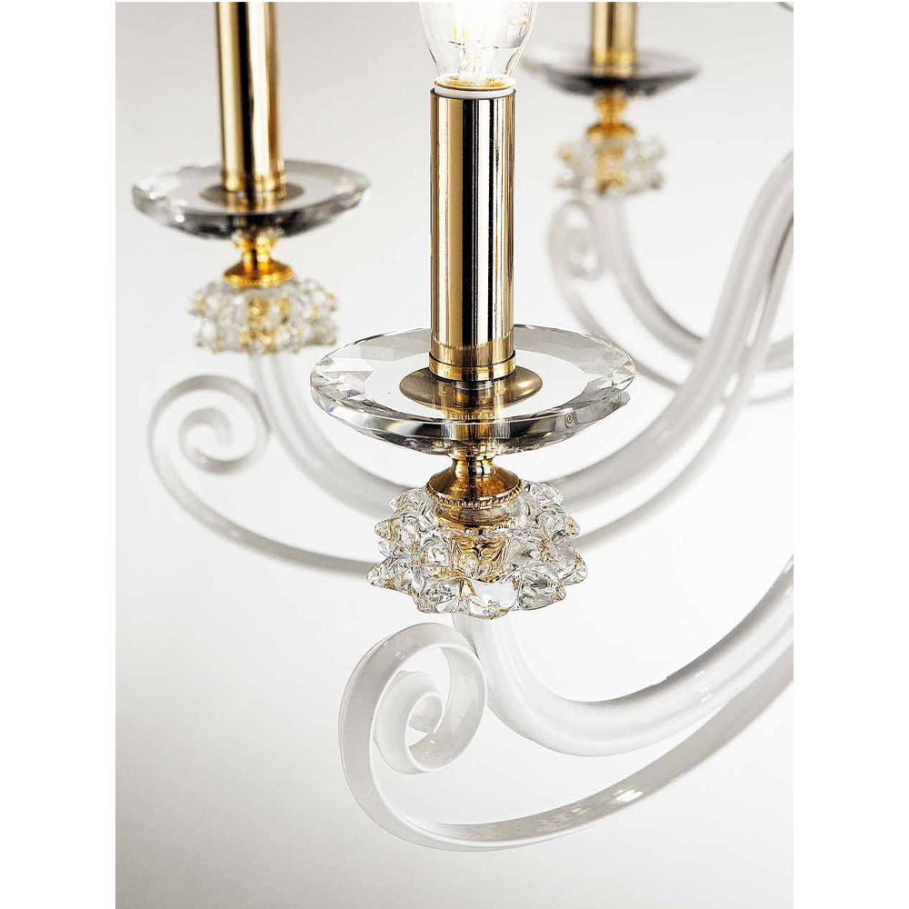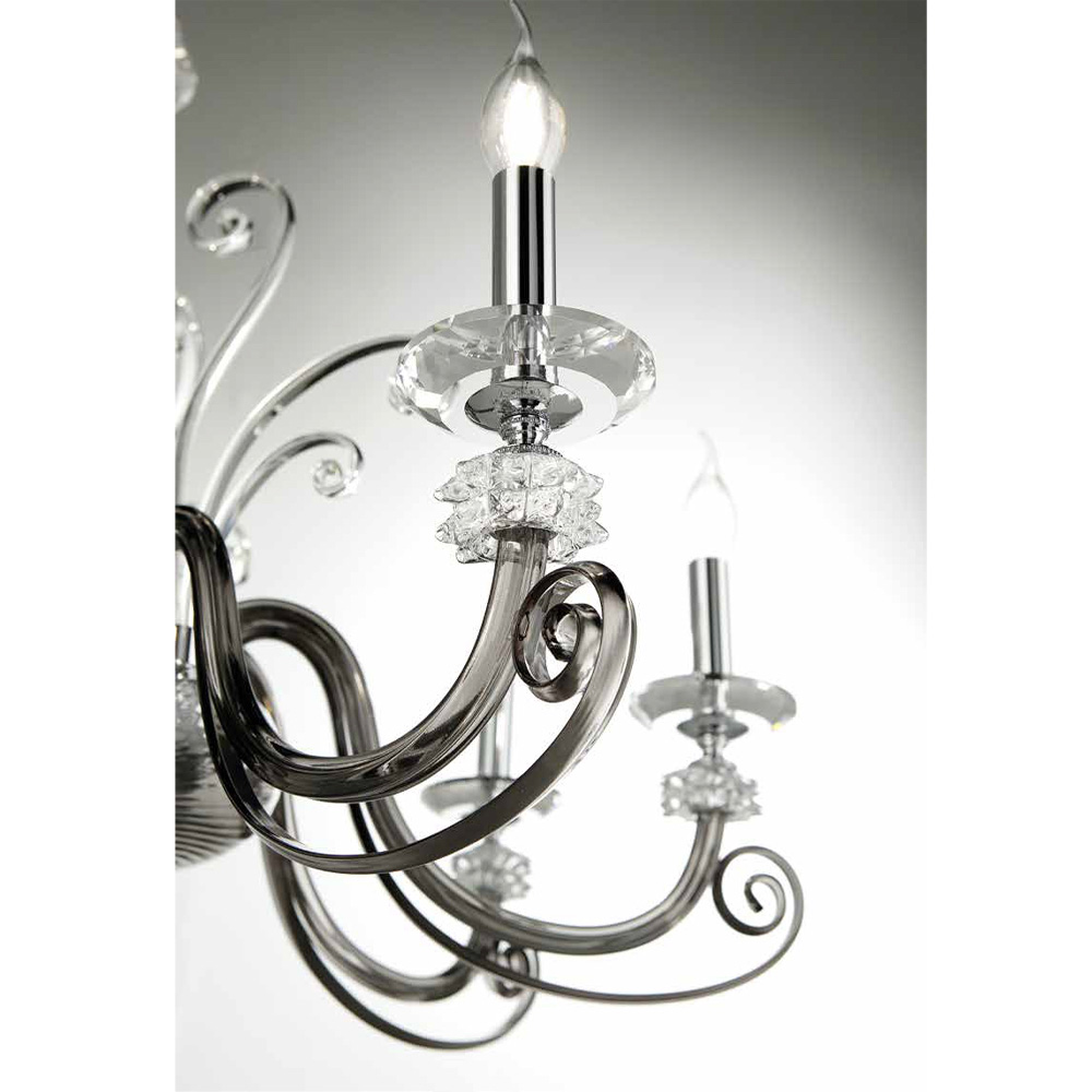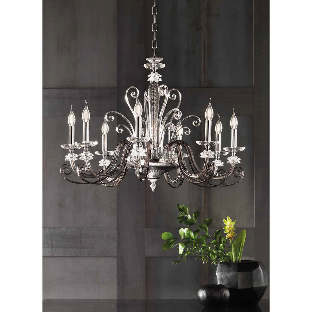 Llambadar 8 dritash i punuar me dorë në xham të fryrë dhe kristal optik, luks i prodhuar në Itali.