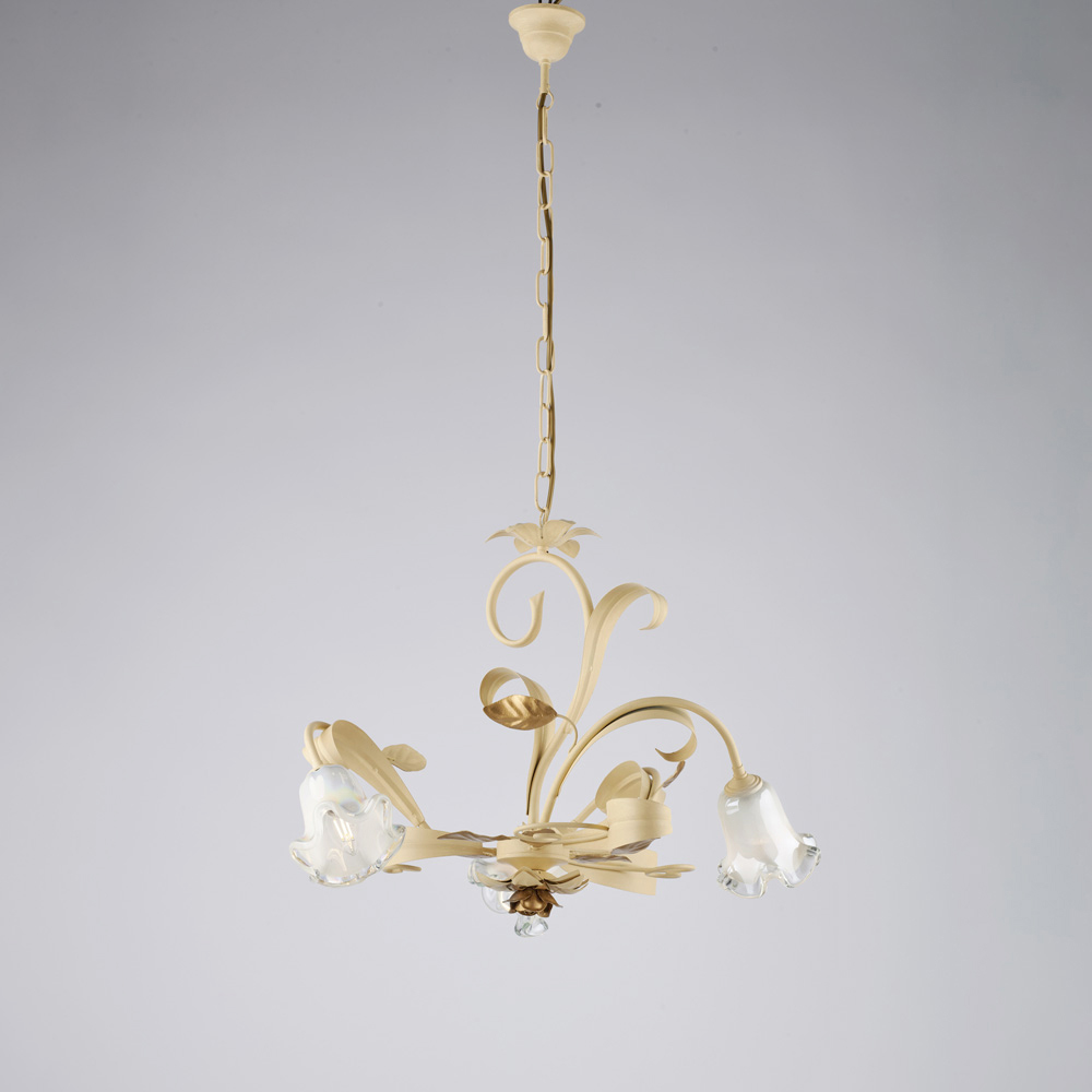 Romantik dhe elegant, ky llambadar klasik i punuar me dorë me hekur të lyer me ngjyrë fildishi është një krijim i shkëlqyer që kujton sharmin e traditës italiane, i riinterpretuar me shije të rafinuar. Struktura sinkronike, e pasuruar me kaçurrela dekorative dhe një abazhur qelqi në formë luleje , i jep lehtësi dhe harmoni efektit të përgjithshëm, duke krijuar një atmosferë të ngrohtë dhe mikpritëse.