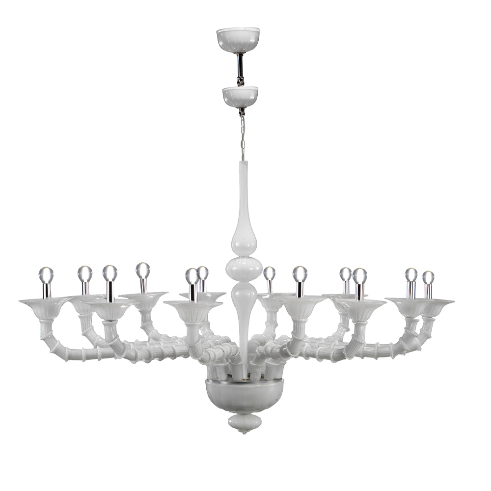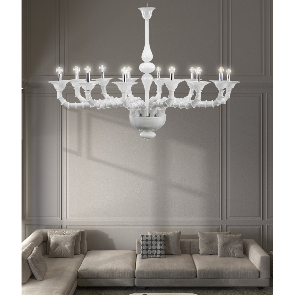 Llambadar 12 dritash me xham të bardhë veneciane të fryrë me dorë, stil klasik.