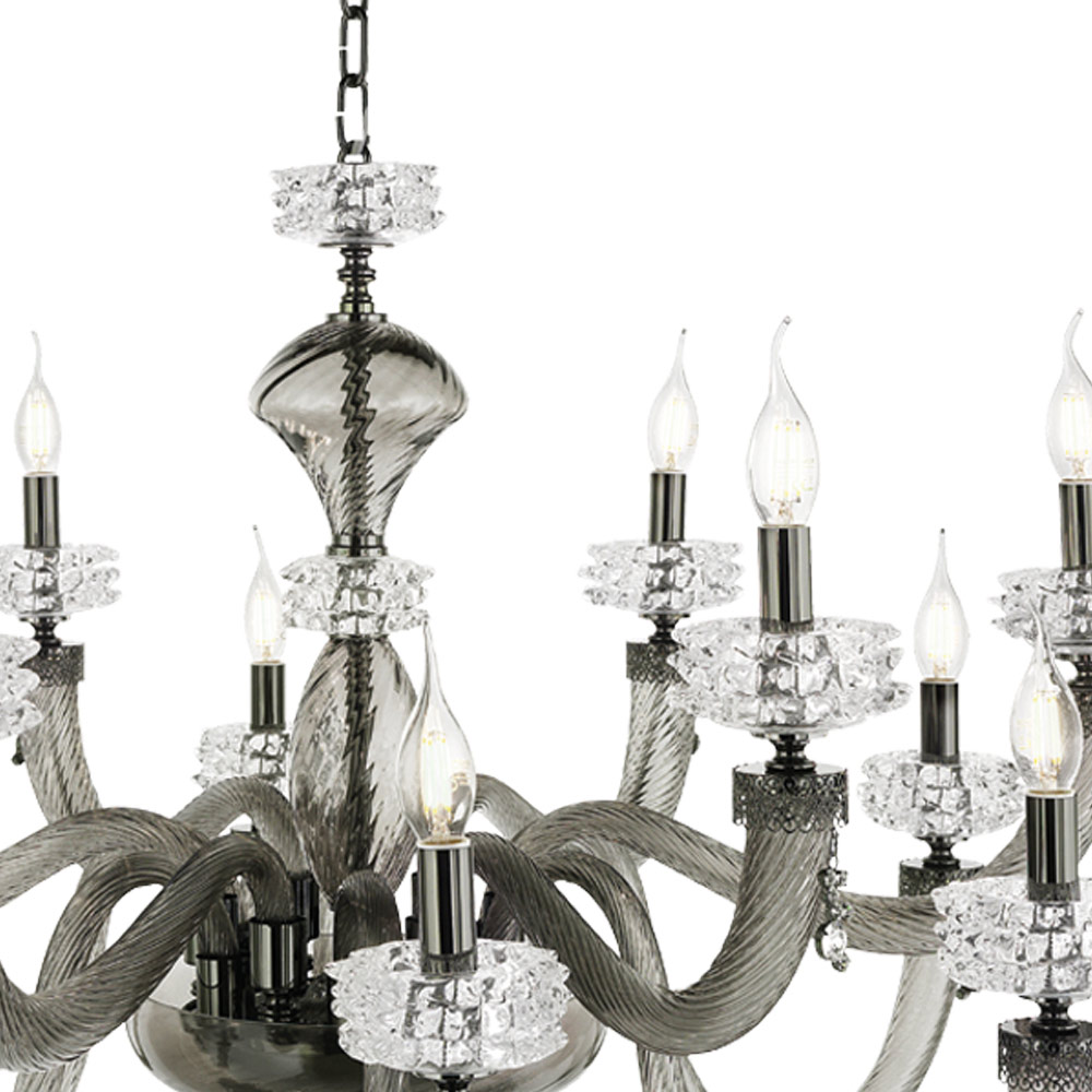 Llambadar me 12 drita në xham dhe metal të punuar me dorë, dizajn luksoz italian.