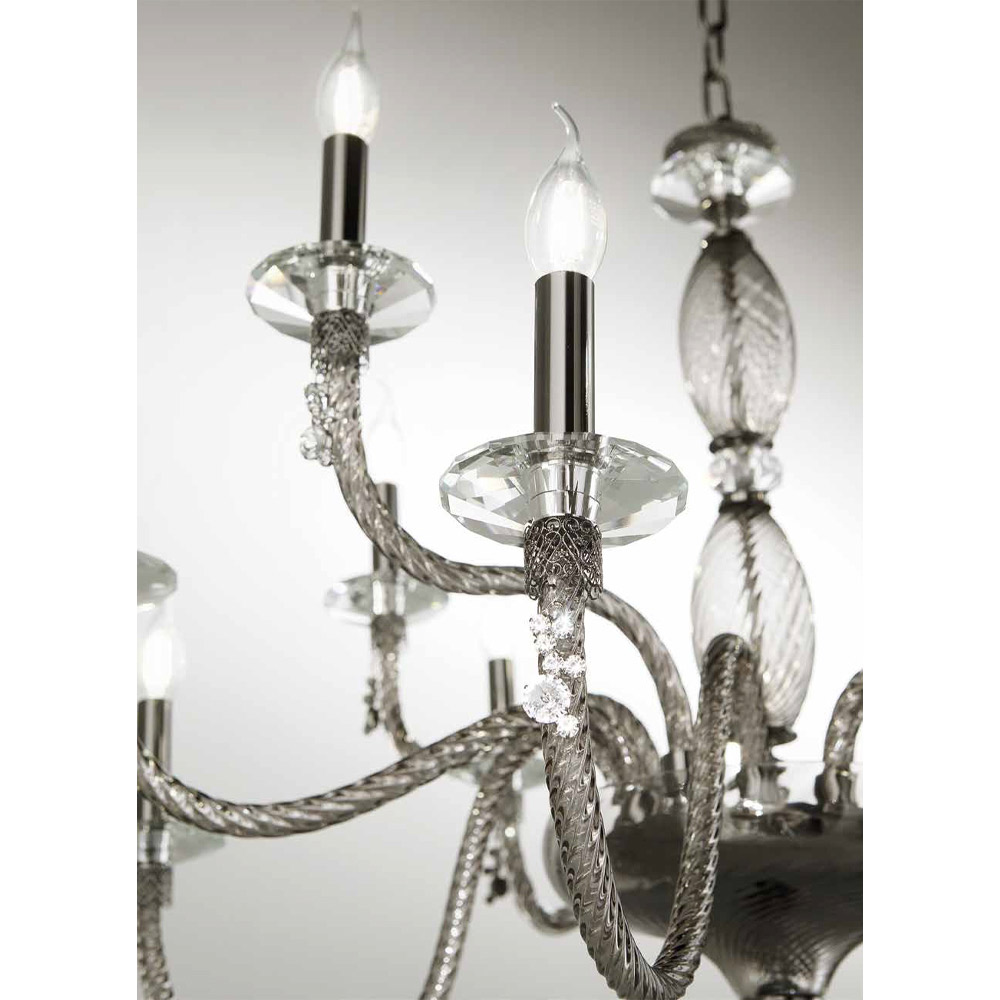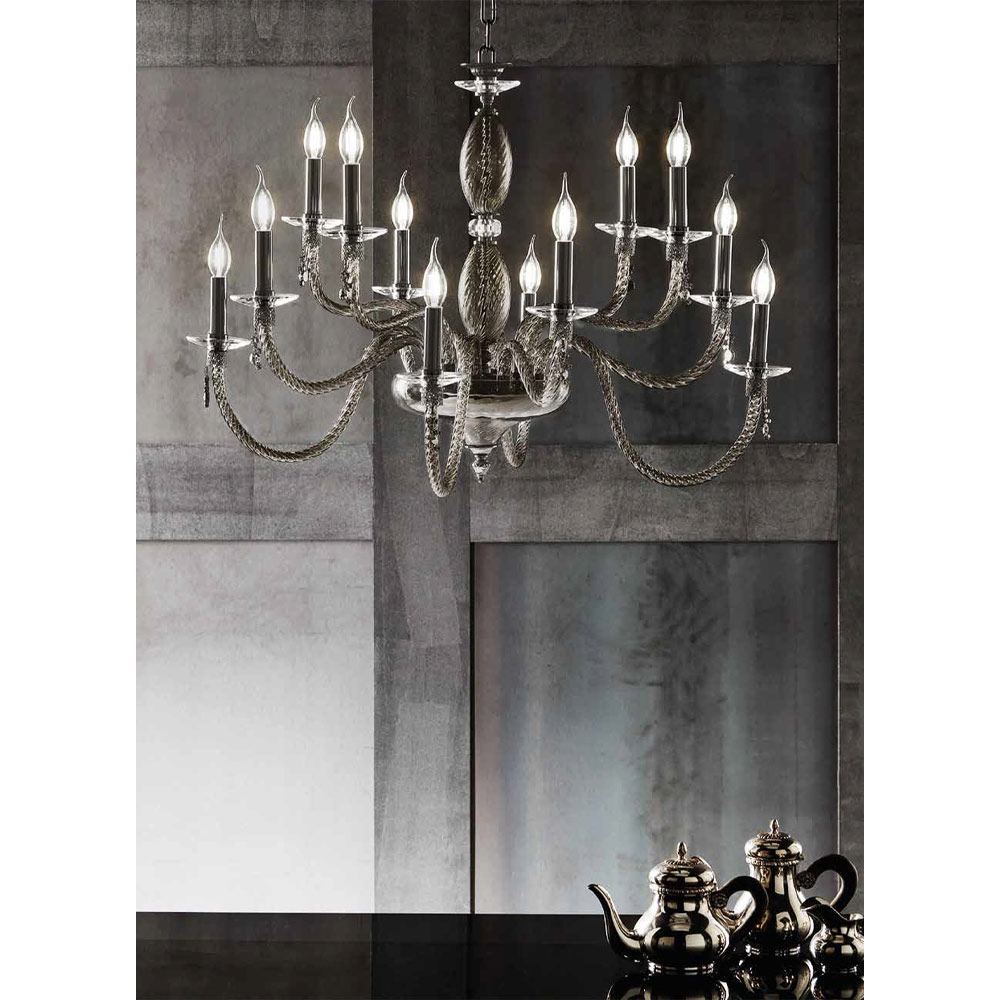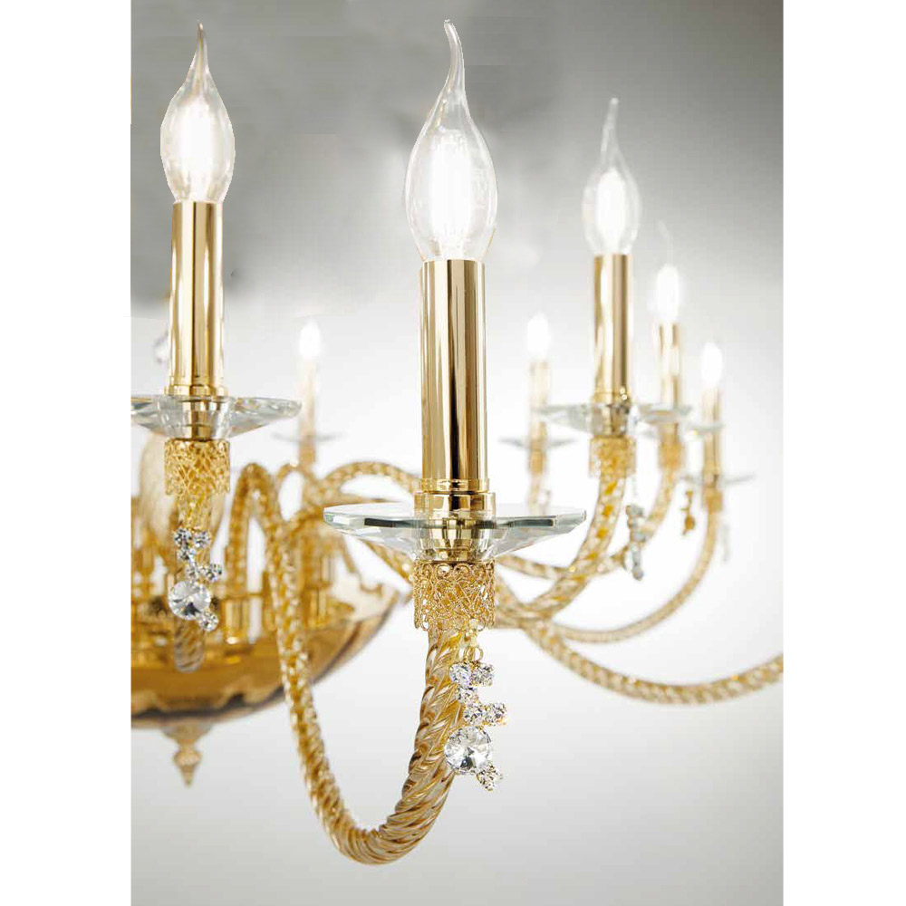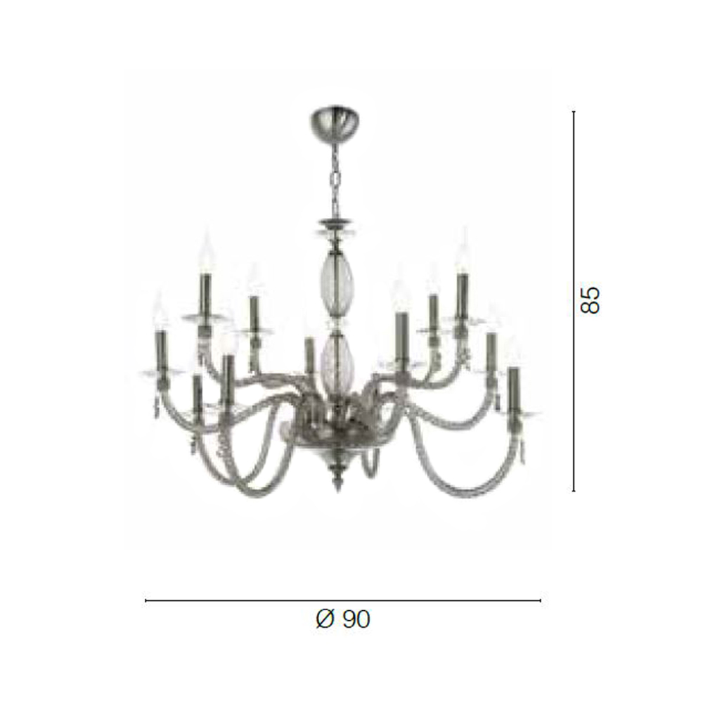 Llambadar 12 dritash në xham të fryrë dhe detaje xhevahiri, luks italian.