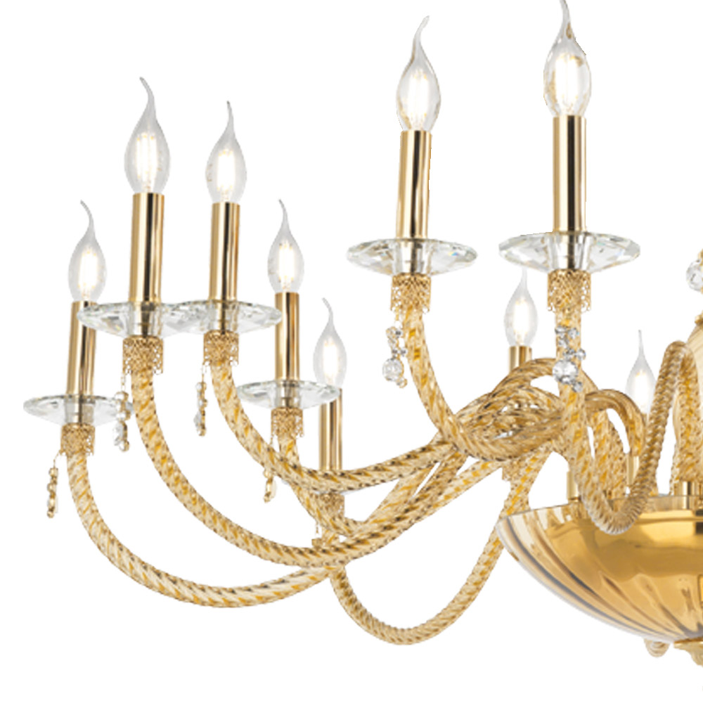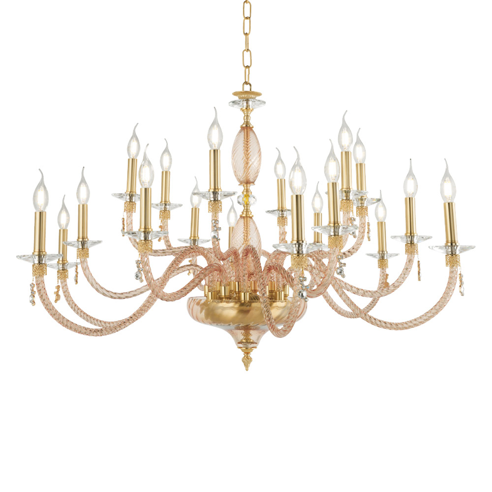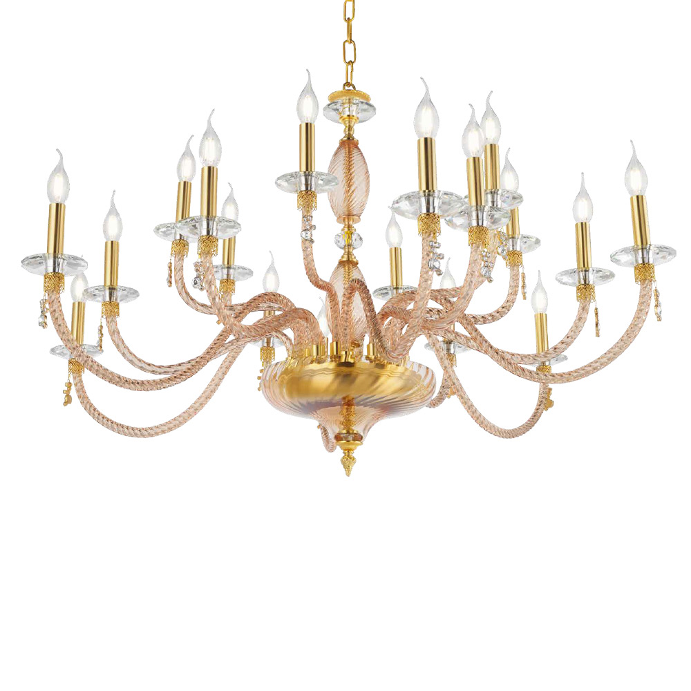 Llambadar 18 dritash në xham të fryrë dhe detaje xhevahiri, luks italian.