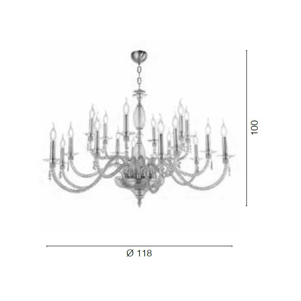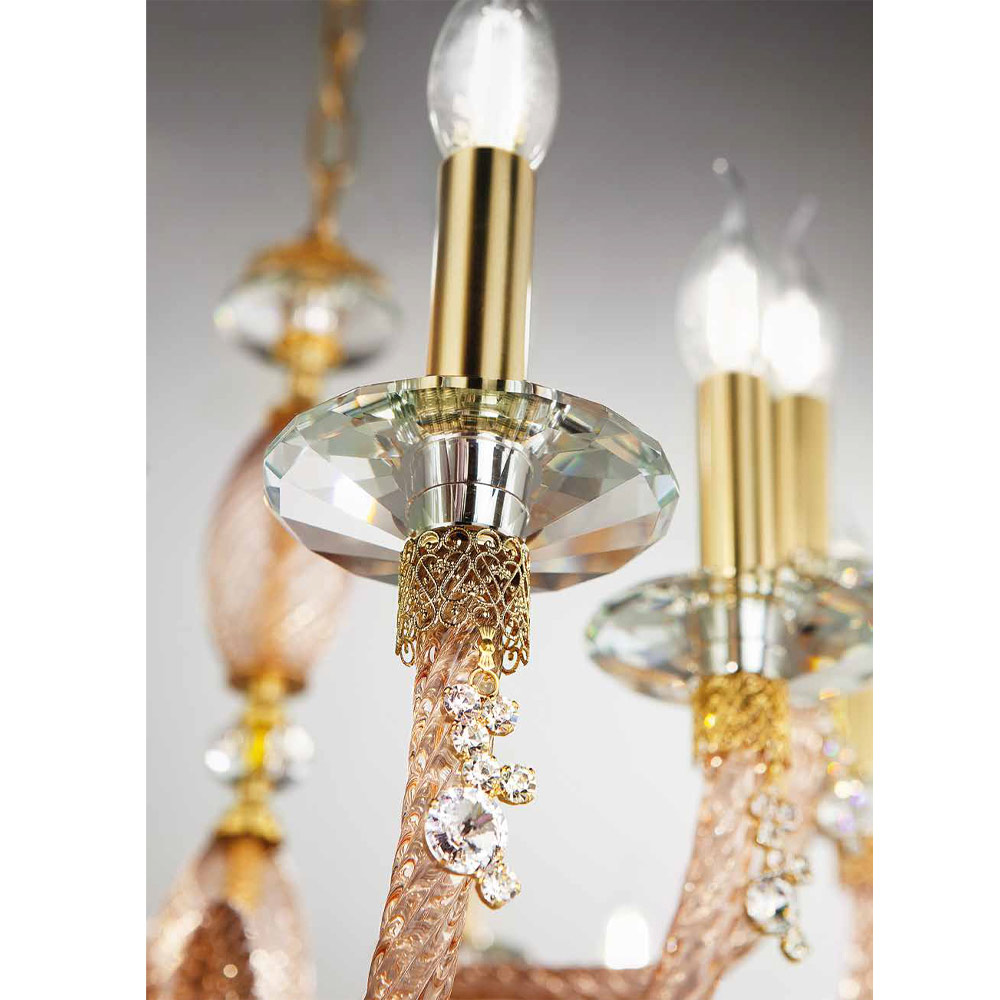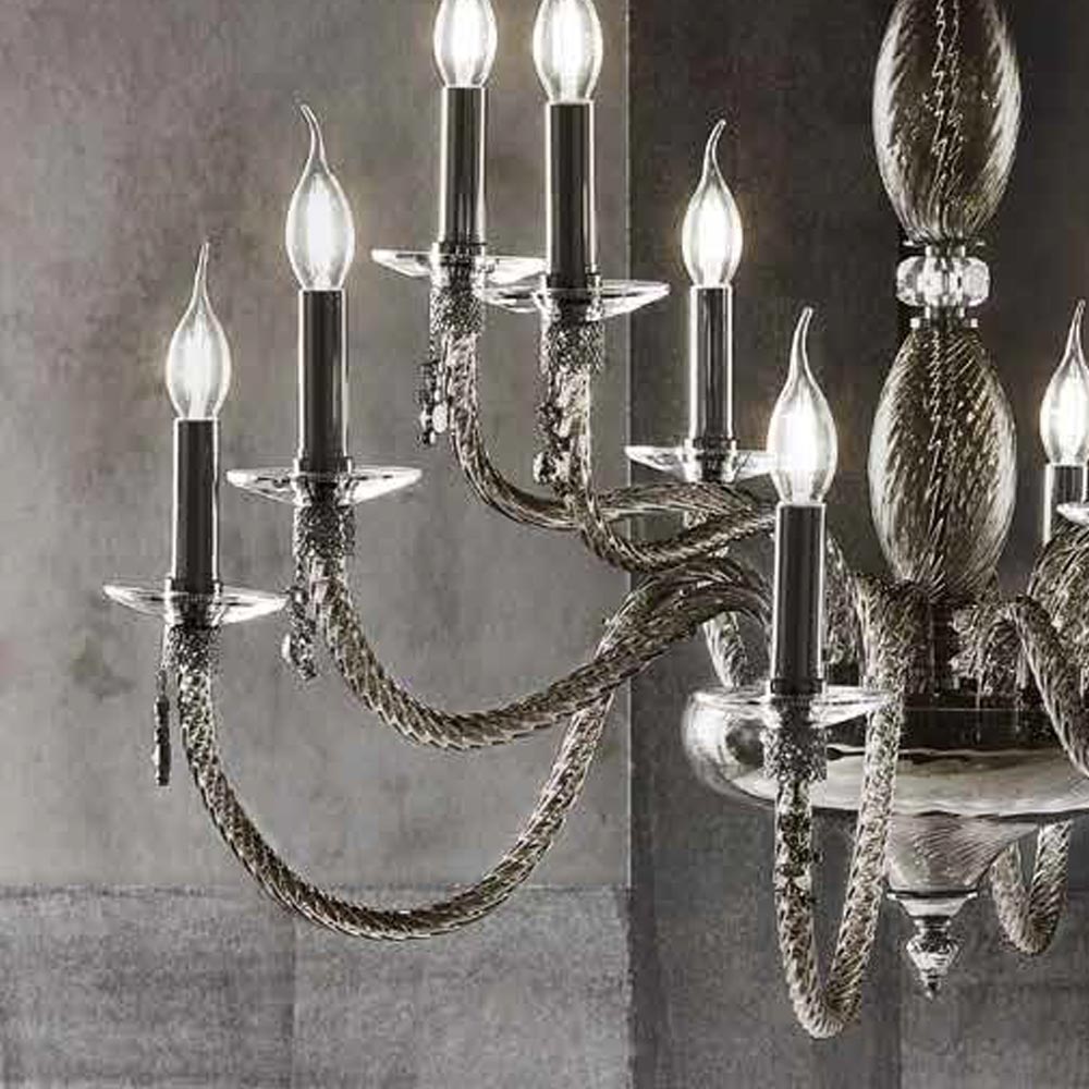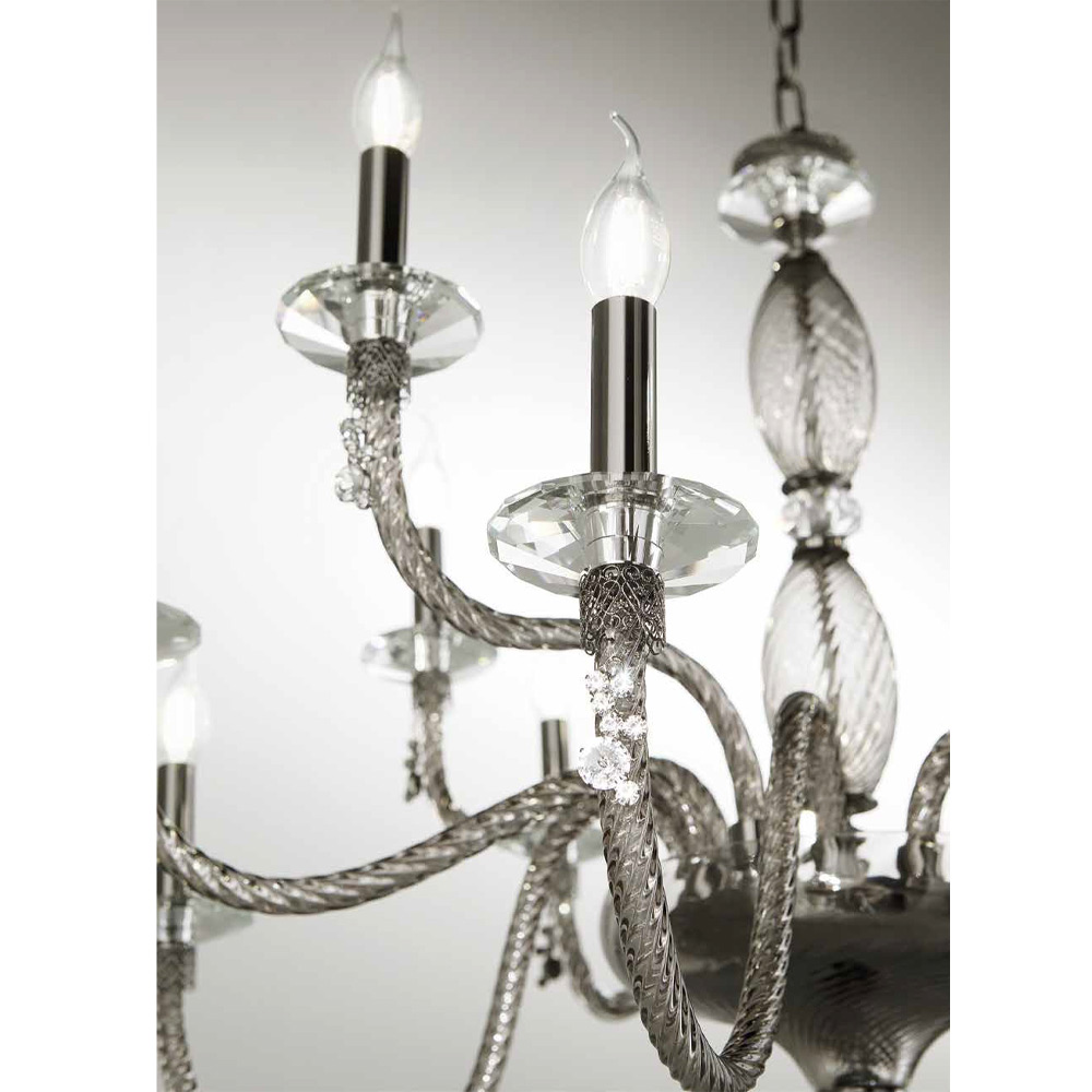 Llambadar 18 dritash në xham të fryrë dhe detaje xhevahiri, luks italian.