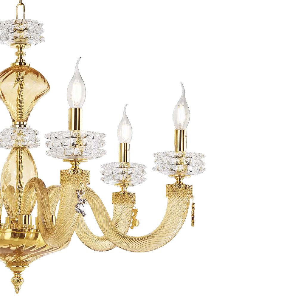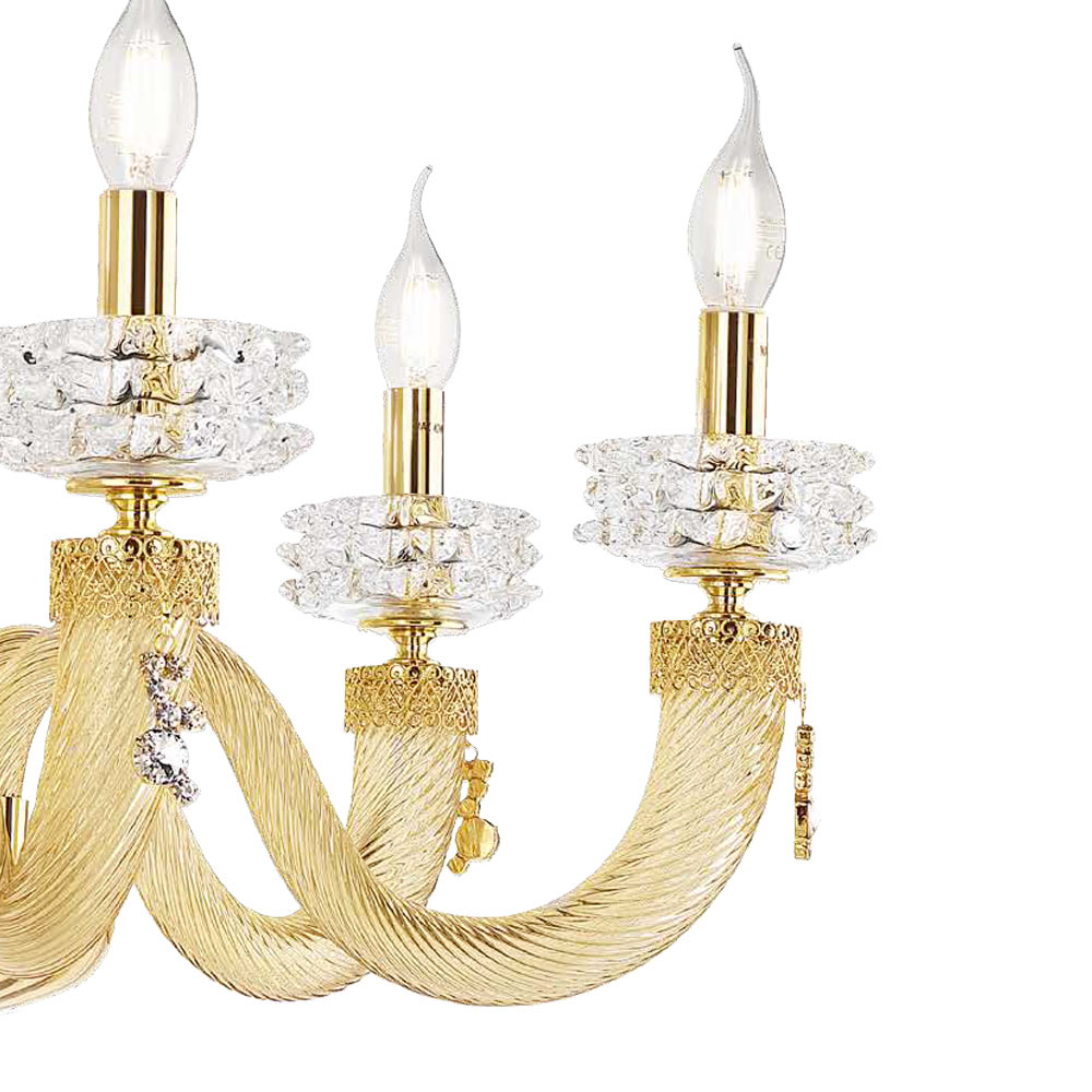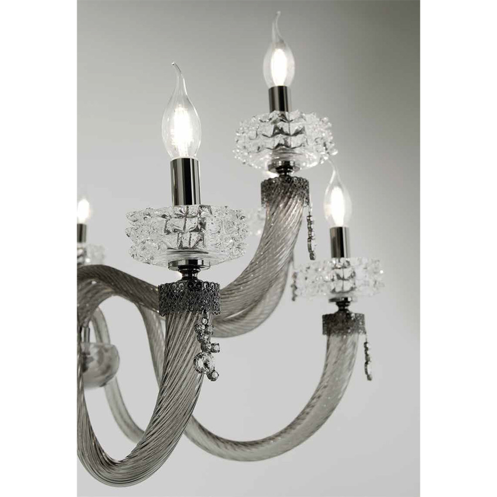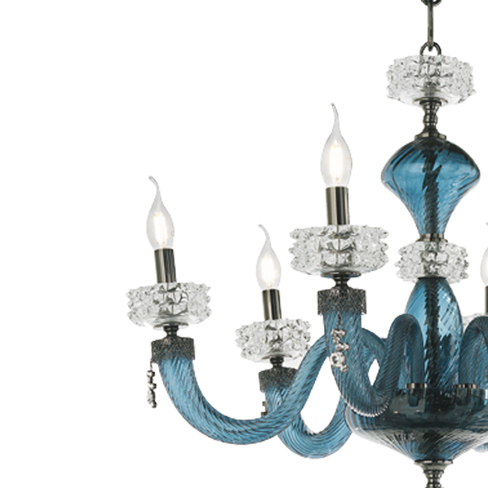 Llambadar me 6 drita në xham dhe metal të punuar me dorë, dizajn luksoz italian.