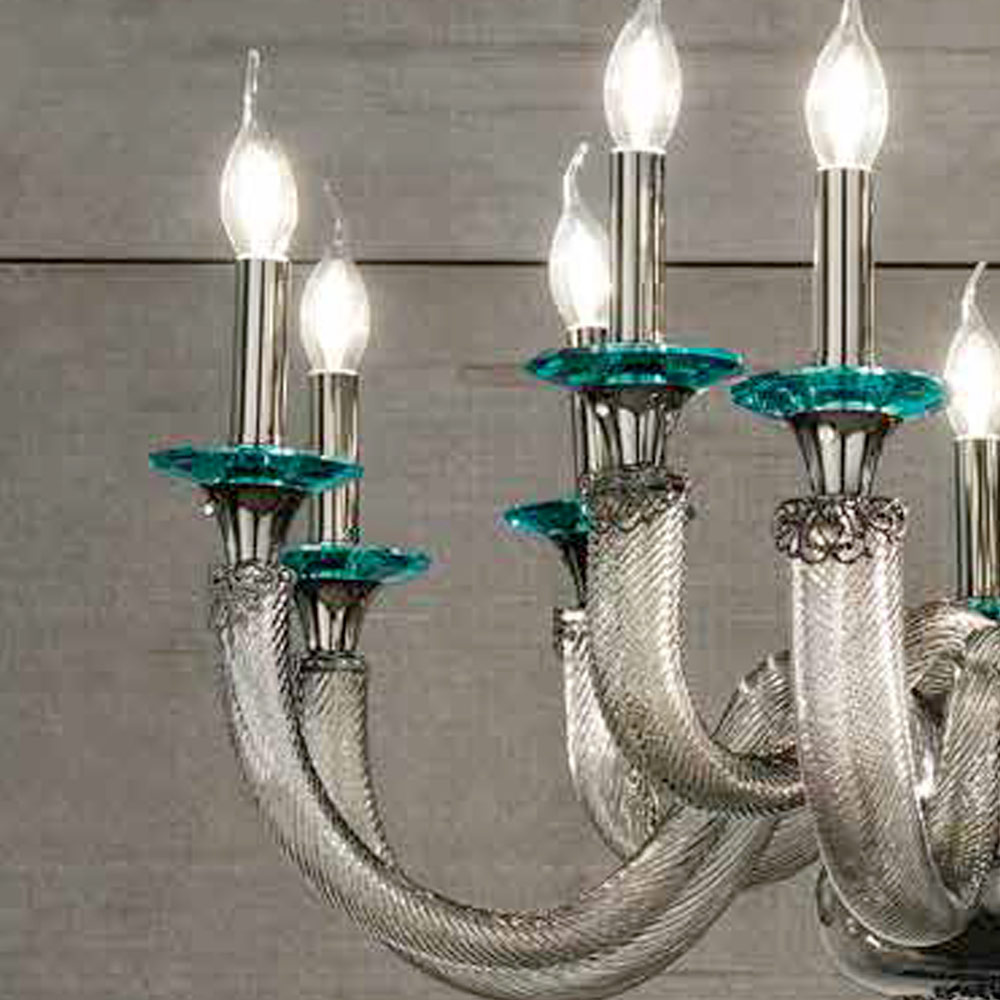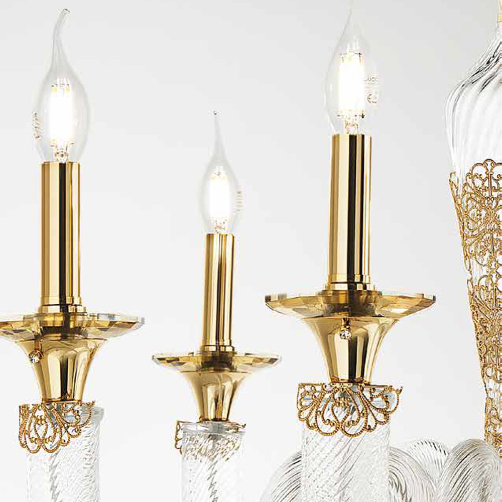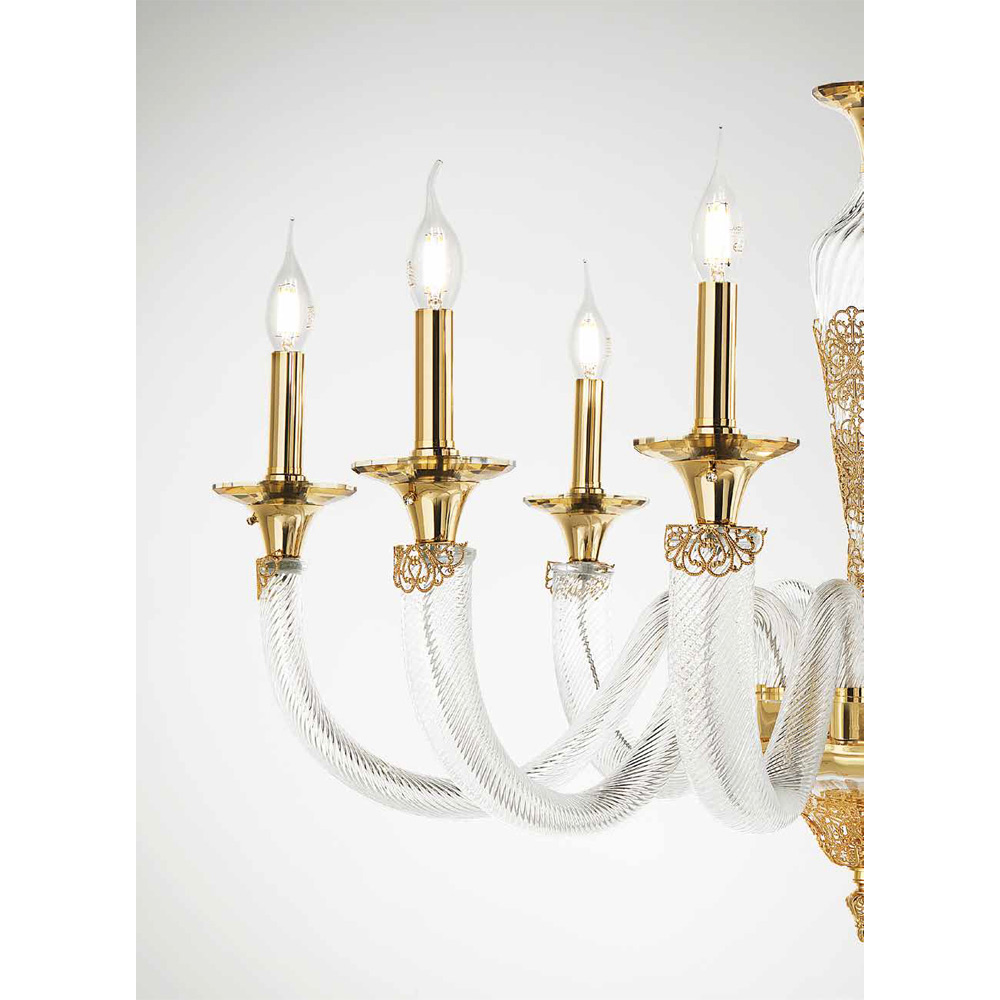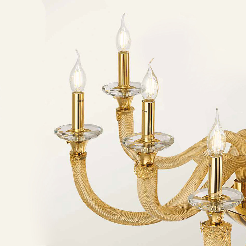 Llambadar 8 dritash ne xham dhe kristale te punuara me dore, luks italian.