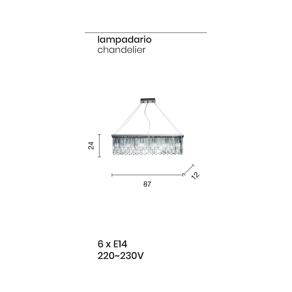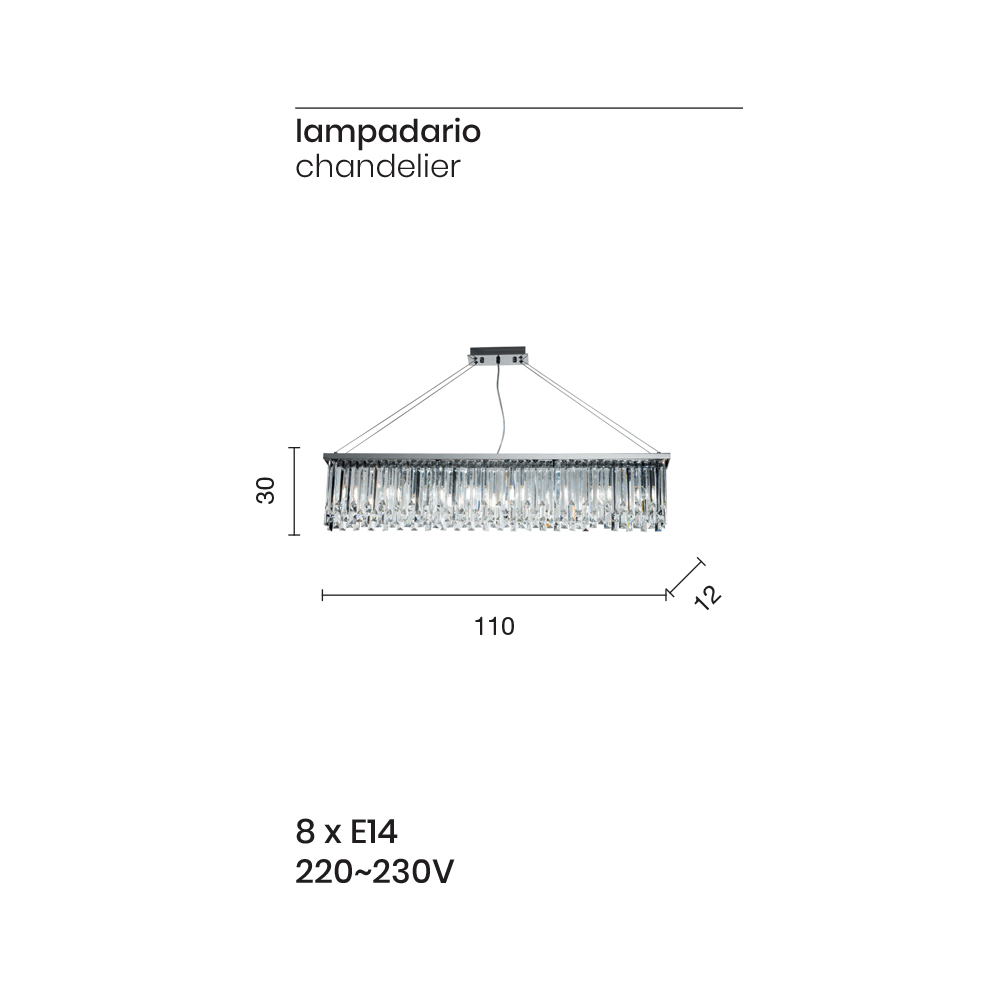 I disponueshëm në dy madhësi të ndryshme, ai përbëhet nga një strukturë metalike e kromuar dhe varëse me kabllo çeliku me gjatësi të rregullueshme.
