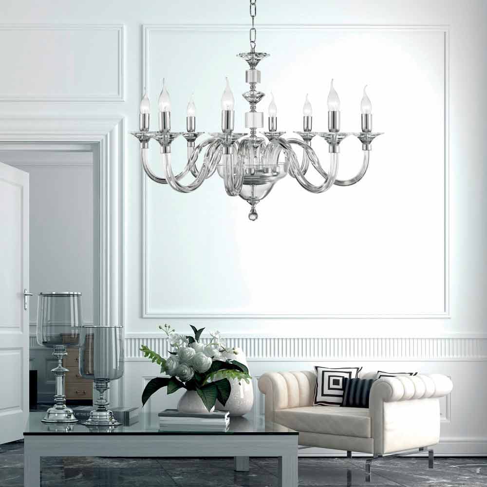 Llambadar klasik me 8 drita të bëra prej qelqi me dekorime kristali Ivy