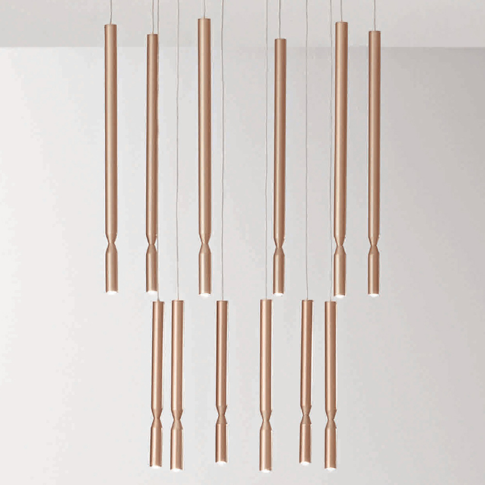 Llambadar tërësisht i prodhuar në Itali i bërë prej metali të lyer me ar dhe 12 drita LED të errësueshme me kabllo të gjatësisë së rregullueshme . Ky produkt synon të përmirësojë traditën përmes një qasjeje bashkëkohore ku stili, klasi dhe inovacioni bashkohen për të krijuar formula të reja dizajni për të mobiluar dhe ndriçuar çdo ambient me shije dhe karakter. Pikat e forta janë veçantia e formave , cilësia e materialeve dhe veçantia e burimit të dritës .