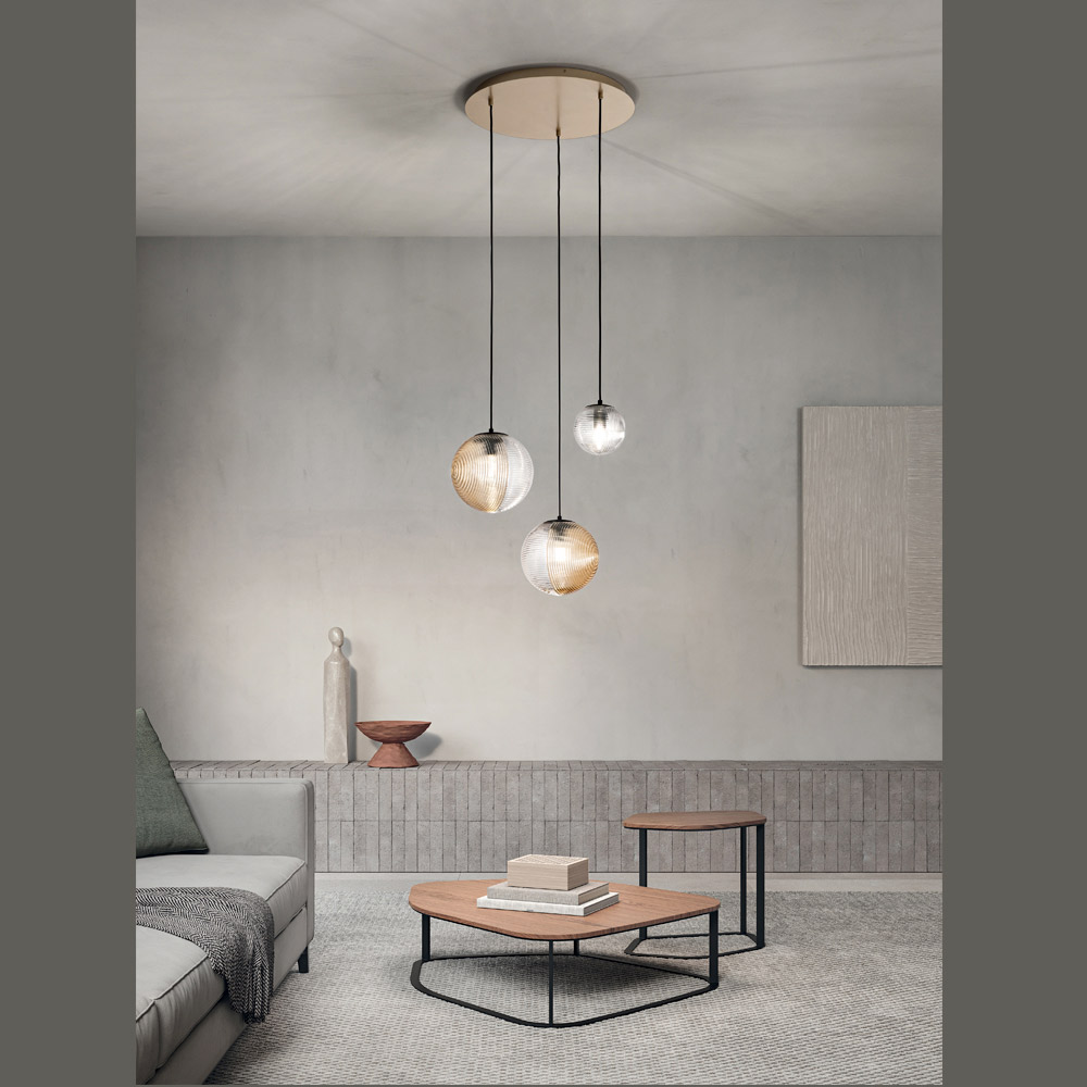 Llambadar me 3 drita në xham të fryrë në formën e një sfere Prodhuar në Itali - Prilla
