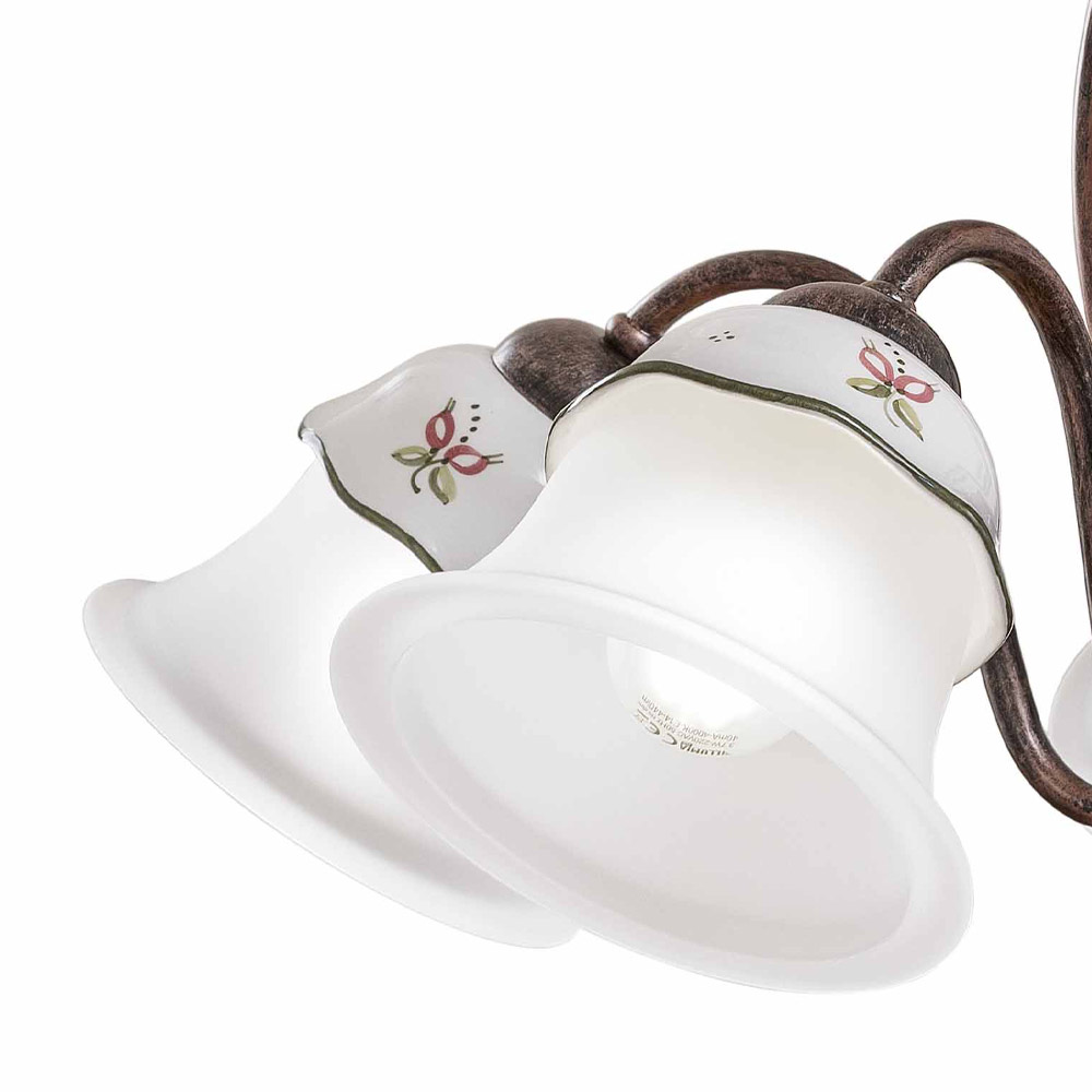 Llambadar me 3 ose 5 drita në hekur, qeramikë të lyer me dorë dhe qelq - Ferrara