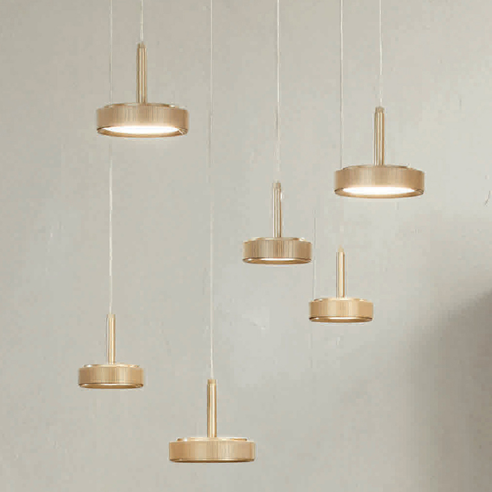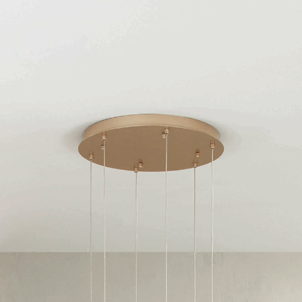Llambadari prodhuar tërësisht në Itali prej metali të lyer ari me kabllo të rregullueshme në gjatësi dhe 6 drita LED. Ky produkt synon të përmirësojë traditën përmes një qasjeje bashkëkohore ku stili, klasi dhe inovacioni bashkohen për të krijuar formula të reja dizajni për të mobiluar dhe ndriçuar çdo ambient me shije dhe karakter. Pikat e forta janë veçantia e formave , cilësia e materialeve dhe veçantia e burimit të dritës .