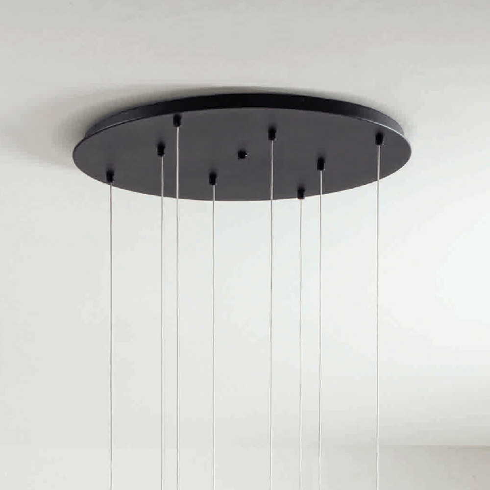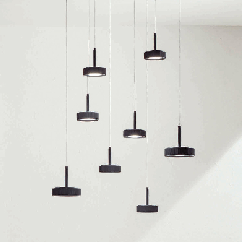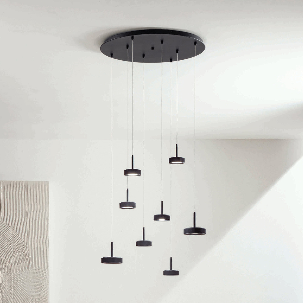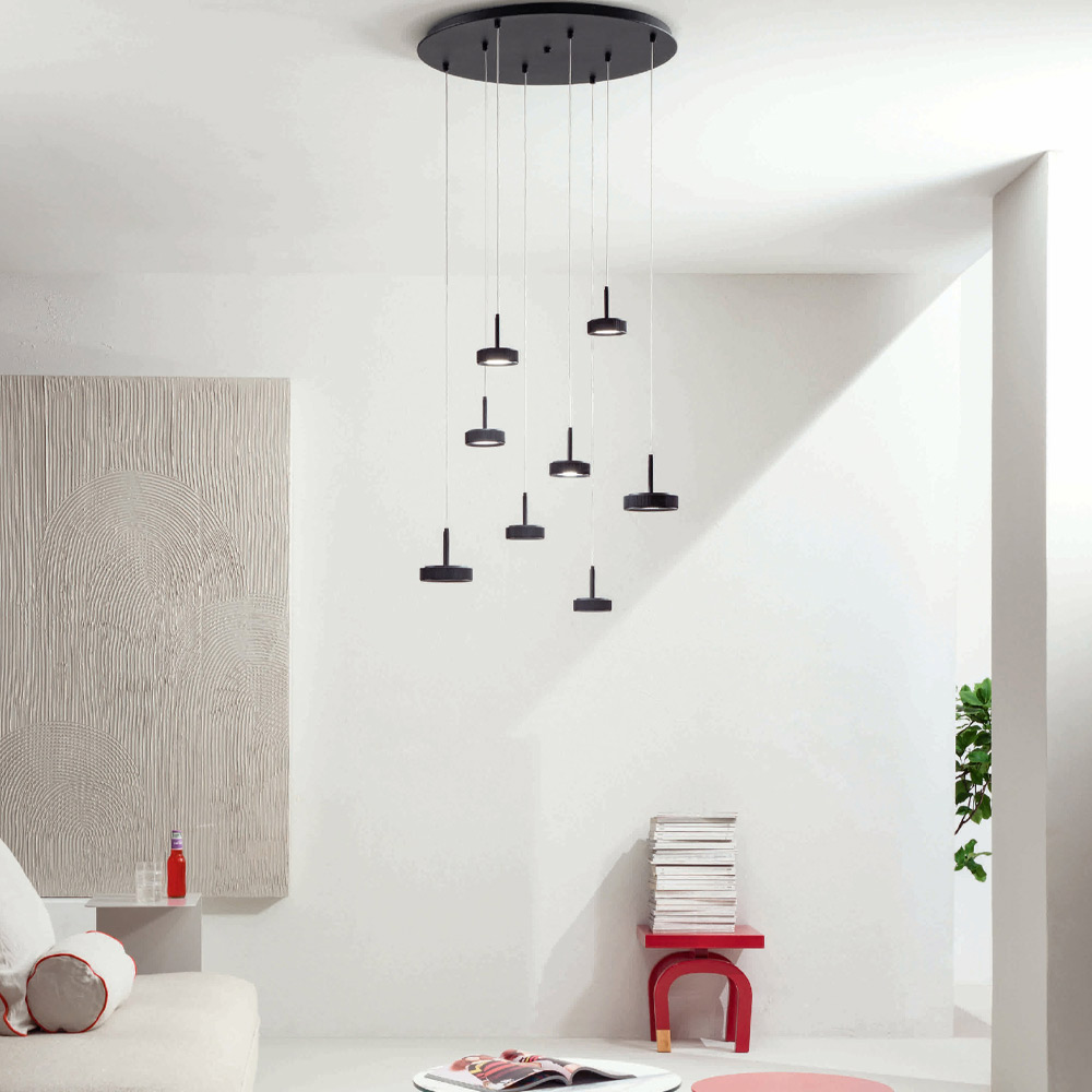 Llambadari prodhuar tërësisht në Itali prej metali të lyer me ngjyrë të zezë me kabllo të rregullueshme në gjatësi dhe drita LED. Ky produkt synon të përmirësojë traditën përmes një qasjeje bashkëkohore ku stili, klasi dhe inovacioni bashkohen për të krijuar formula të reja dizajni për të mobiluar dhe ndriçuar çdo ambient me shije dhe karakter. Pikat e forta janë veçantia e formave , cilësia e materialeve dhe veçantia e burimit të dritës .