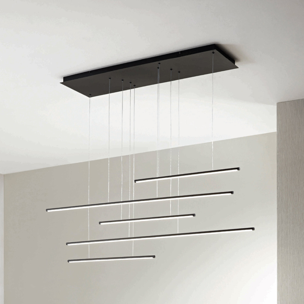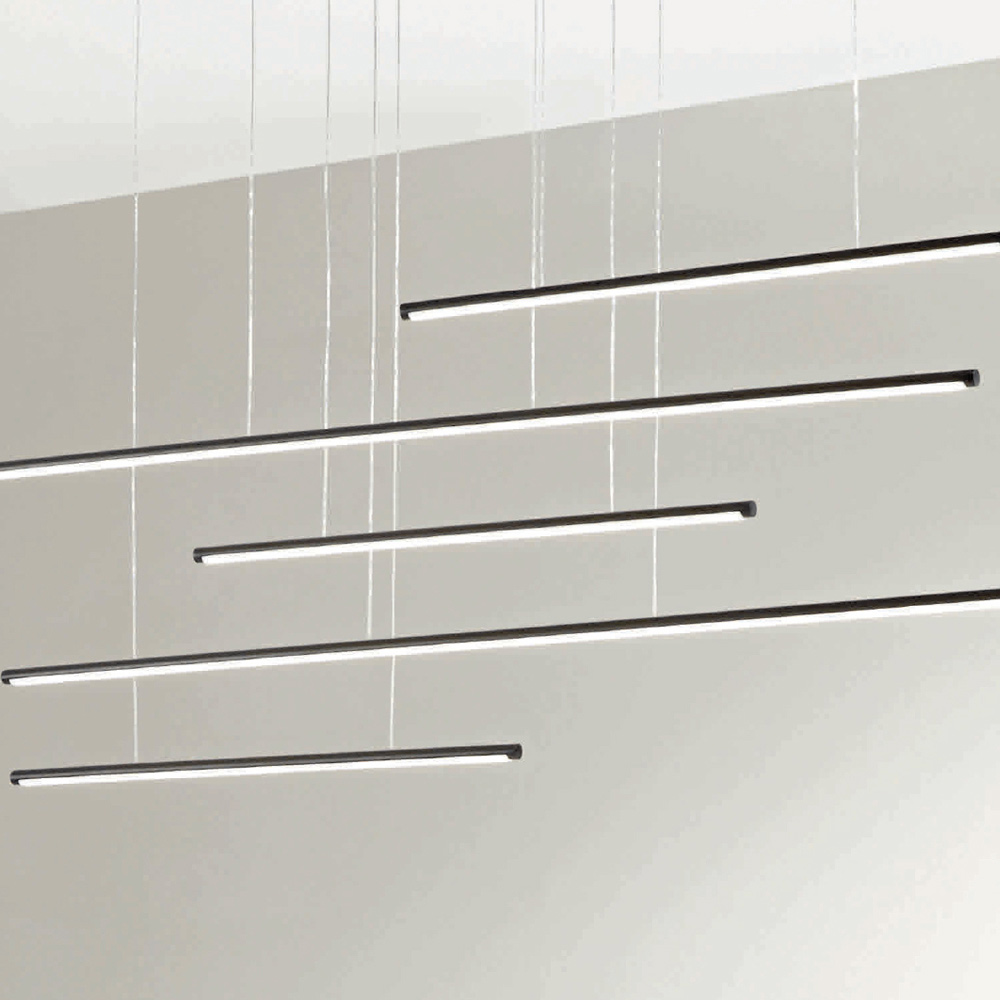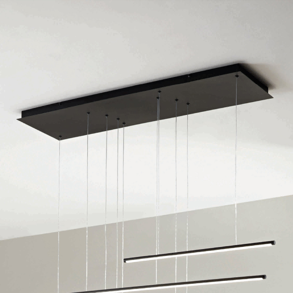 Llambadar tërësisht i prodhuar në Itali i bërë prej metali të lyer me ngjyrë të zezë me dritëLED që zvogëlohet dhe kabllo të rregullueshme në gjatësi. Ky produkt synon të përmirësojë traditën përmes një qasjeje bashkëkohore ku stili, klasi dhe inovacioni bashkohen për të krijuar formula të reja dizajni për të mobiluar dhe ndriçuar çdo ambient me shije dhe karakter. Pikat e forta janë veçantia e formave , cilësia e materialeve dhe veçantia e burimit të dritës .