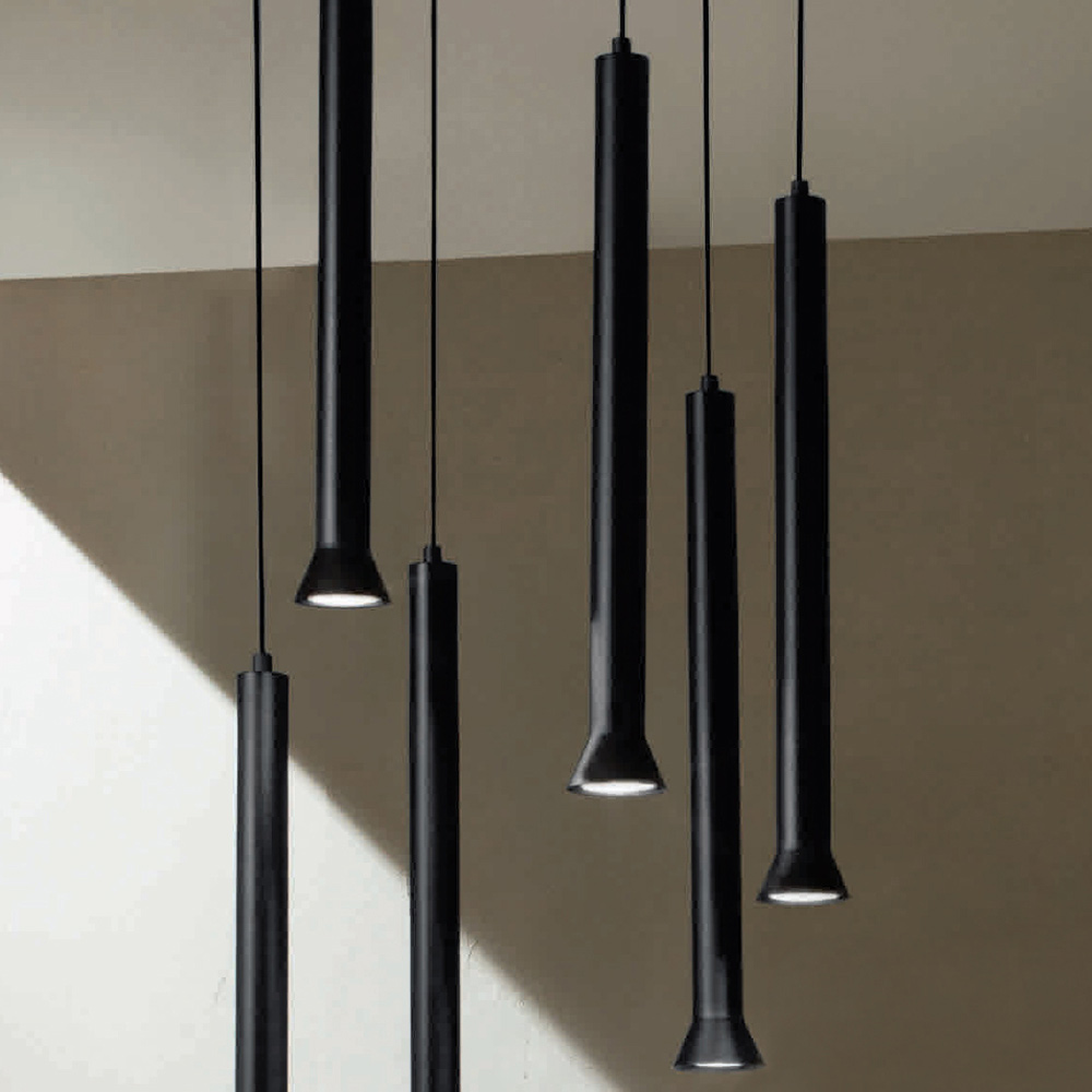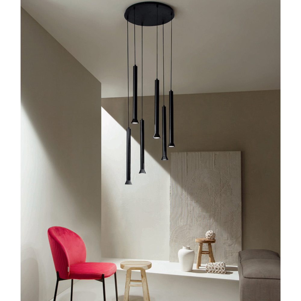 Llambadari prodhuar tërësisht në Itali prej metali të lyer me ngjyrë të zezë. Ky produkt synon të përmirësojë traditën përmes një qasjeje bashkëkohore ku stili, klasi dhe inovacioni bashkohen për të krijuar formula të reja dizajni për të mobiluar dhe ndriçuar çdo ambient me shije dhe karakter. Pikat e forta janë veçantia e formave , cilësia e materialeve dhe veçantia e burimit të dritës .