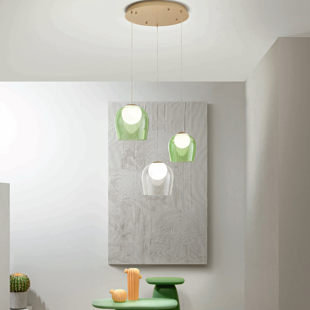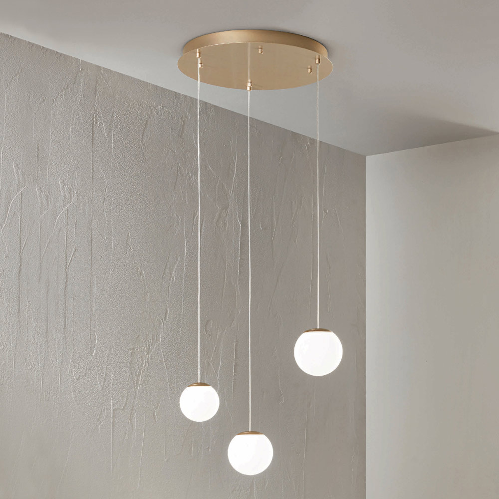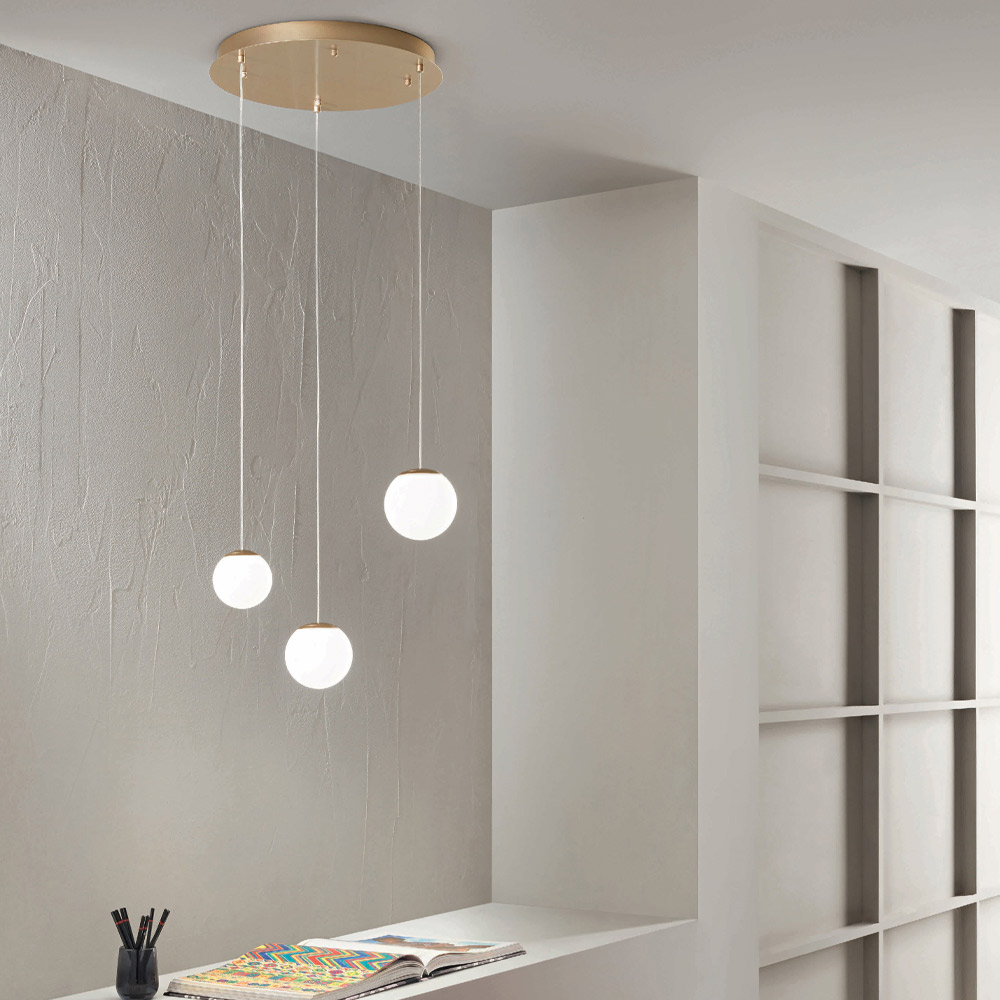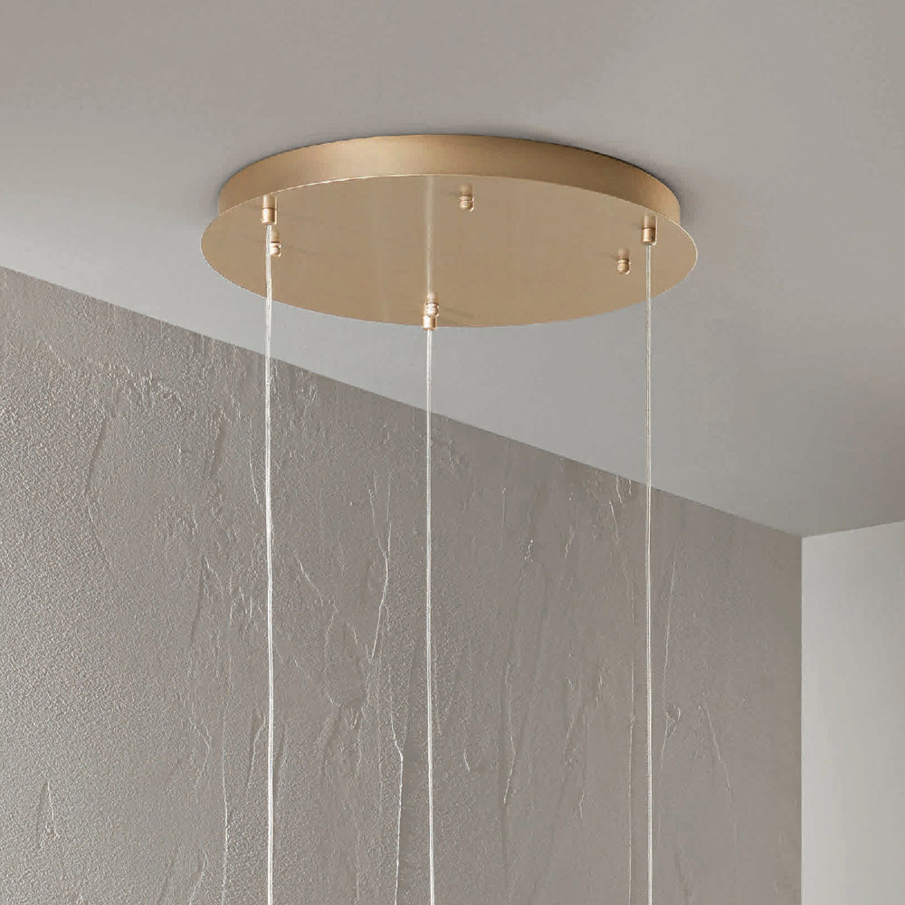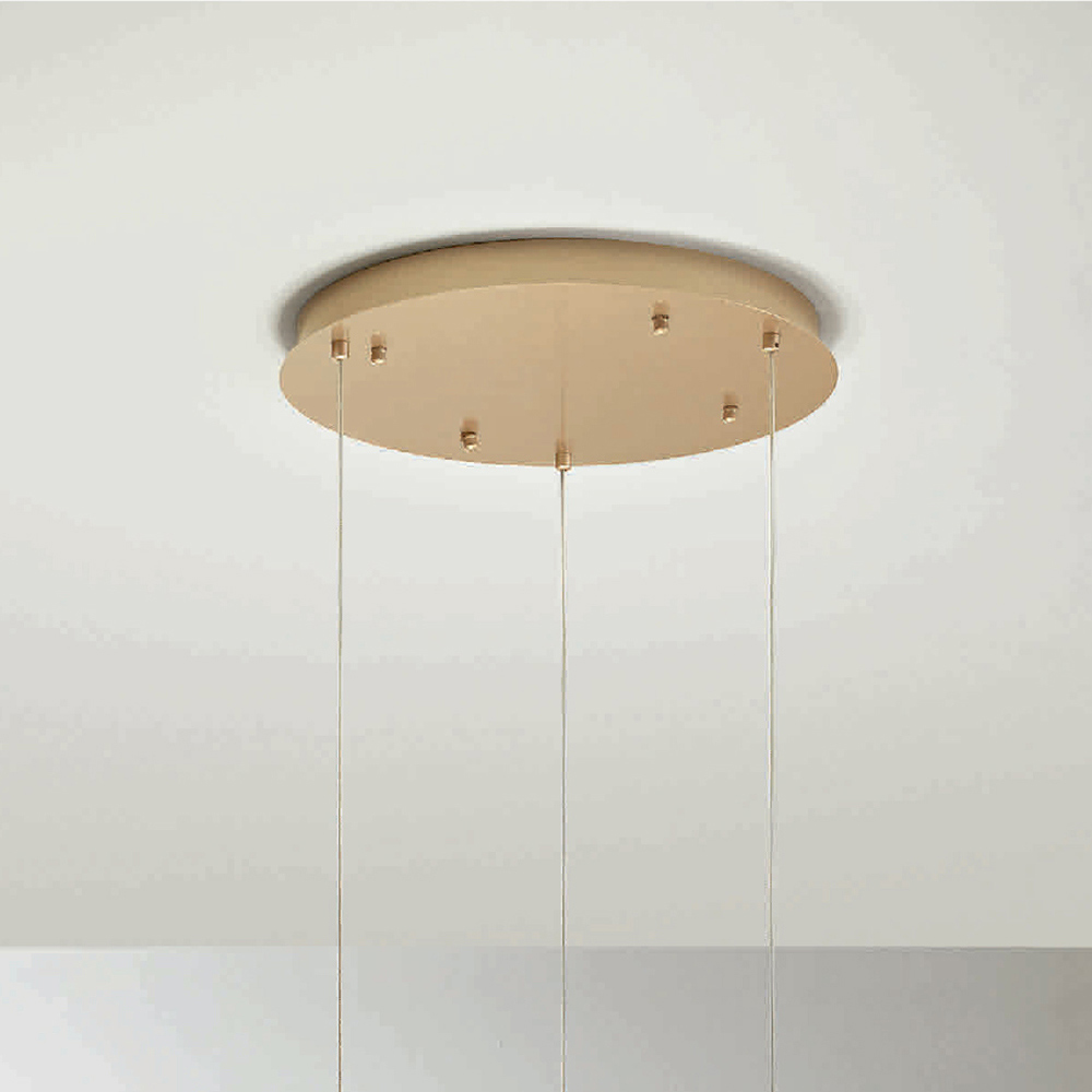 Llambadar tërësisht i prodhuar në Itali i bërë nga metali i lyer me ar dhe 3 drita LED me abazhur opsional në xhami me ngjyrë që mund të hiqet duke hequr sferën e xhamit. Ky produkt synon të përmirësojë traditën përmes një qasjeje bashkëkohore ku stili, klasi dhe inovacioni bashkohen për të krijuar formula të reja dizajni për të mobiluar dhe ndriçuar çdo ambient me shije dhe karakter. Pikat e forta janë veçantia e formave , cilësia e materialeve dhe veçantia e burimit të dritës .