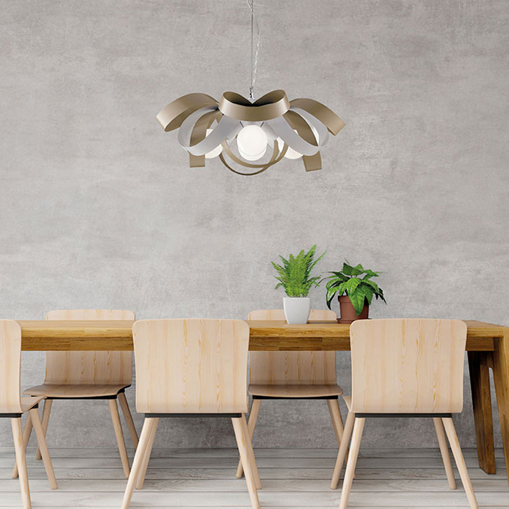 Materialet e përzgjedhura, si hekuri dhe çeliku, krijojnë një efekt elegant dhe një dalje të këndshme drite. I prodhuar tërësisht në Itali, ky produkt është rezultat i një pune të kujdesshme që përmirëson estetikën dhe funksionalitetin.