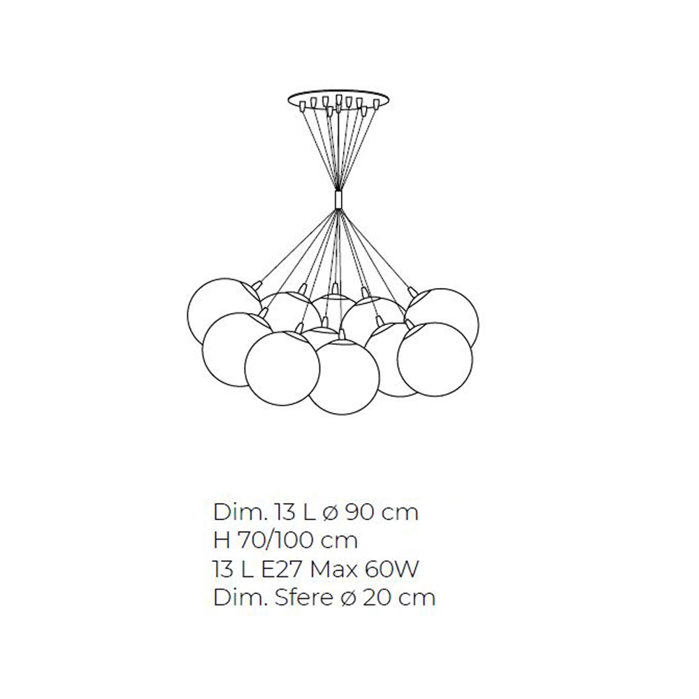 nga xhami me kuti të fryrë me dorë, ideale për mbushjen dhe ndriçimin e hapësirave të mëdha si ambientet e ndenjes ose dhomat e ngrënies falë një