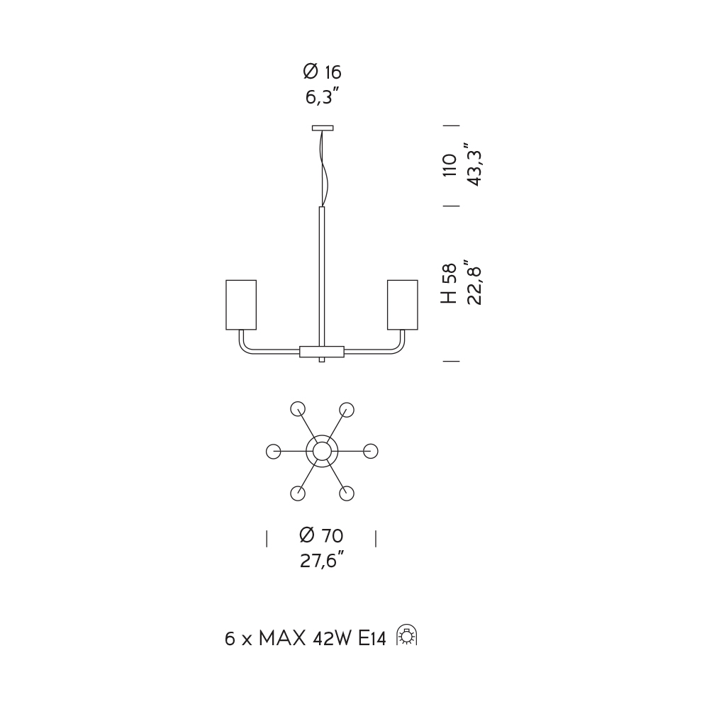 Llamba (nuk përfshihen) : 6, 9 ose 12 x MAX 42W E14