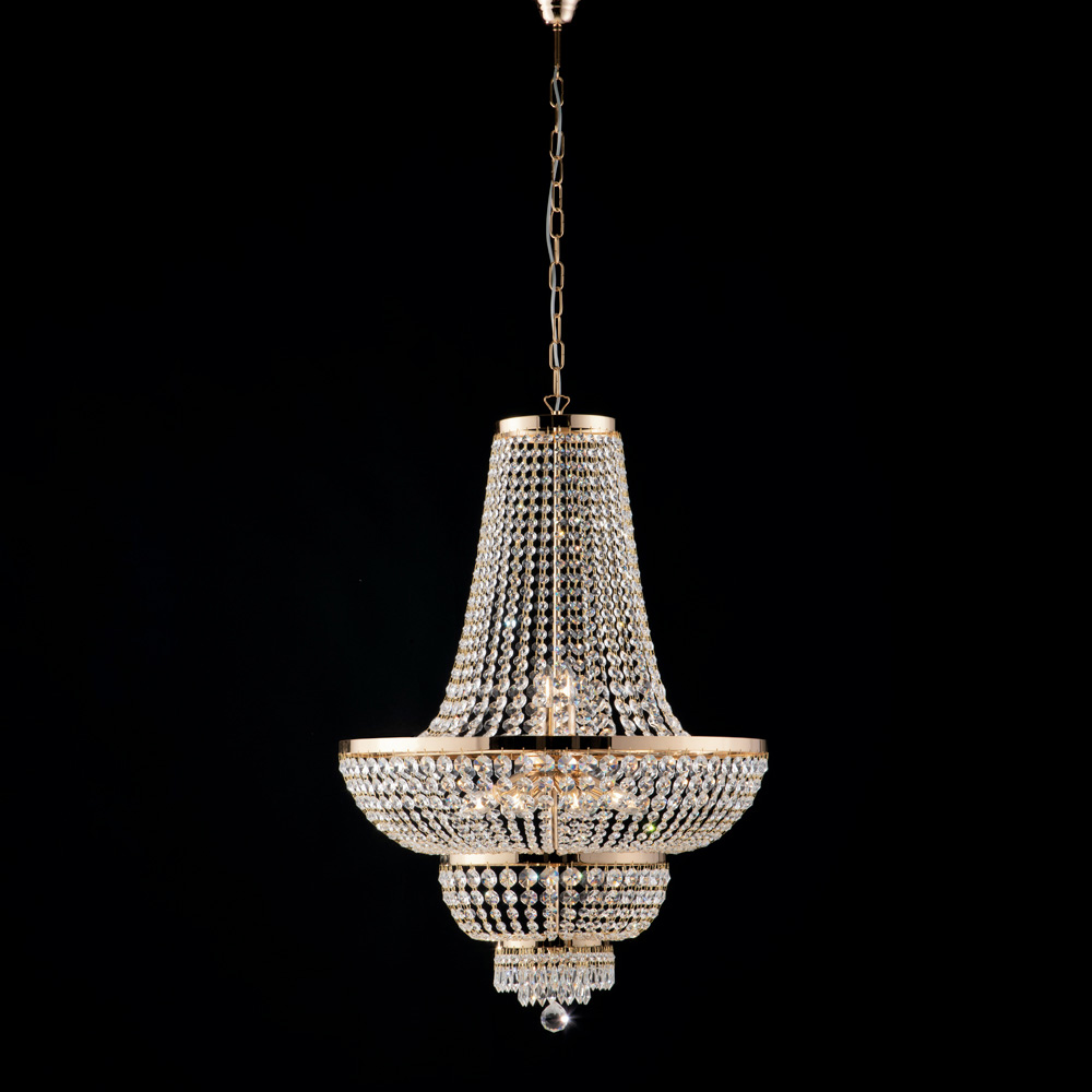 Dramatik, i ndritshëm dhe shumë prestigjioz, ky llambadar klasik luksoz prej hekuri dhe bronzi me gurë të çmuar është projektuar për hapësira që duan të dallohen me elegancë. Struktura e hollë, e zbukuruar me kaskada gurësh të shkëlqyeshëm , reflekton dritën, duke krijuar një lojë të rafinuar reflektimesh që zbukuron çdo hapësirë.