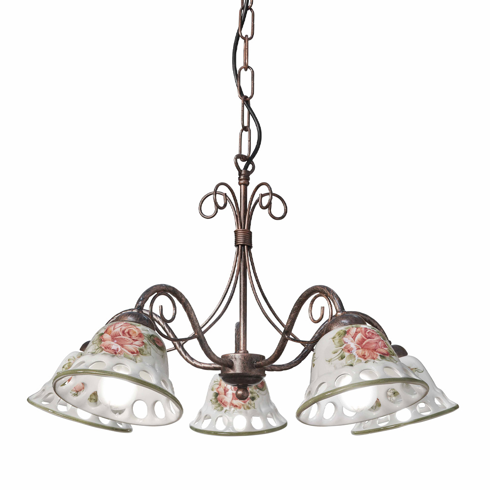 Ky llambadar me 3 ose 5 drita është tërësisht prej metali dhe qeramike të lyer me dorë , me dekorime me lule që nxjerrin në pah mjeshtërinë dhe shkathtësinë e mjeshtrit.