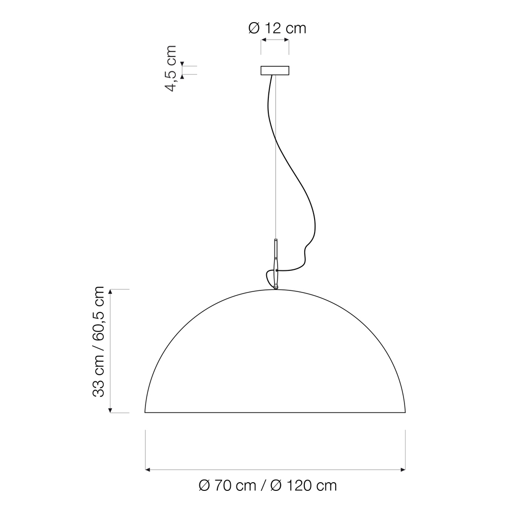 - Ø 120 cm 60,5 (h) cm Rozetë: Ø 12x4,5 cm, llamba E27 max 100W / rec. LED 20 W.