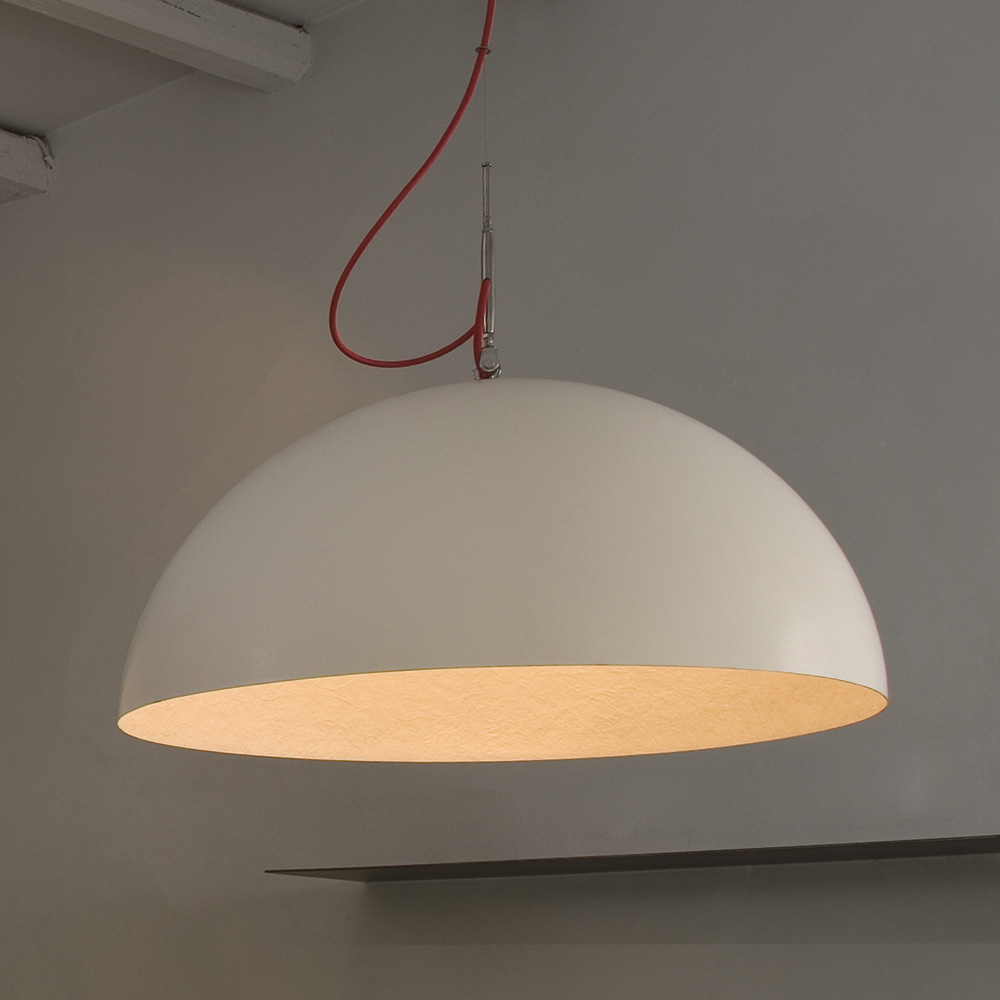 Bërë me kujdes dhe vëmendje për çdo detaj, për të rikrijuar një atmosferë magjike hënore; është pjesa e brendshme e abazhurit prej nebulit, një material i përbërë nga rrëshirë dhe fibra, venat e të cilit i japin llambës këtë efekt të veçantë. Pjesa e jashtme e abazhurit në laprene dhe çelik krijon një kontrast interesant me pjesën e brendshme.