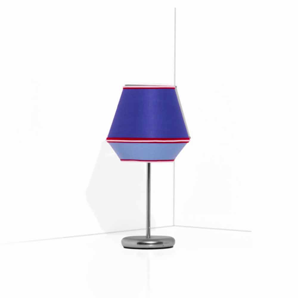 Bërë tërësisht në Itali, kjo llambë tryezë është i përbërë nga një bazë metalike chromed në të cilën Abazhuri blu dhe të lehtapambuku blu pasuruar me fut kuqe dhe të bardhë është i instaluar. Pikërisht ky kombinim origjinal dhe krijues është në gjendje t'i japë një ngjyre dhe gjallëri mjedisit, duke u vënë re në sajë të personalitetit të tij të fortë dhe duke rritur vlerën estetike të mobiljeve përreth.