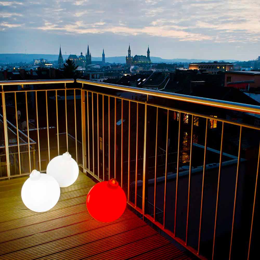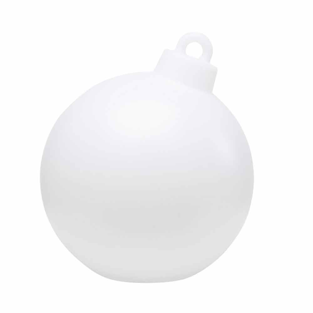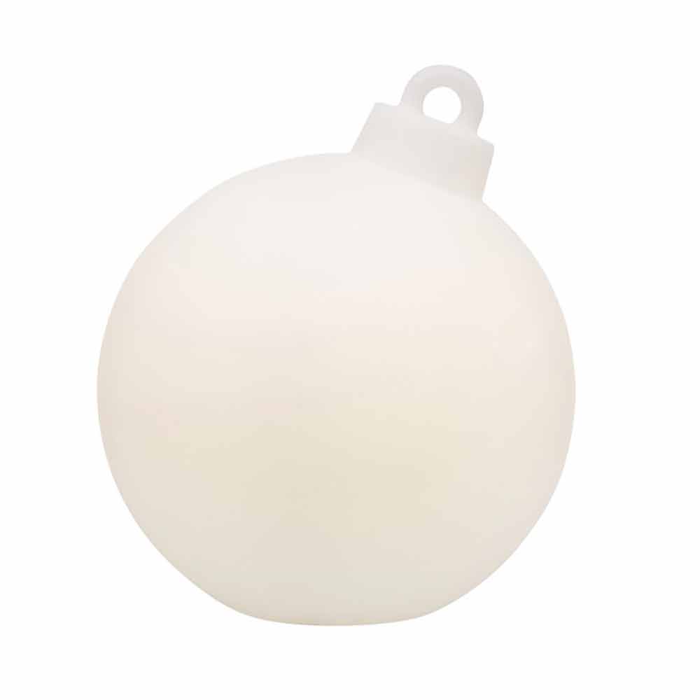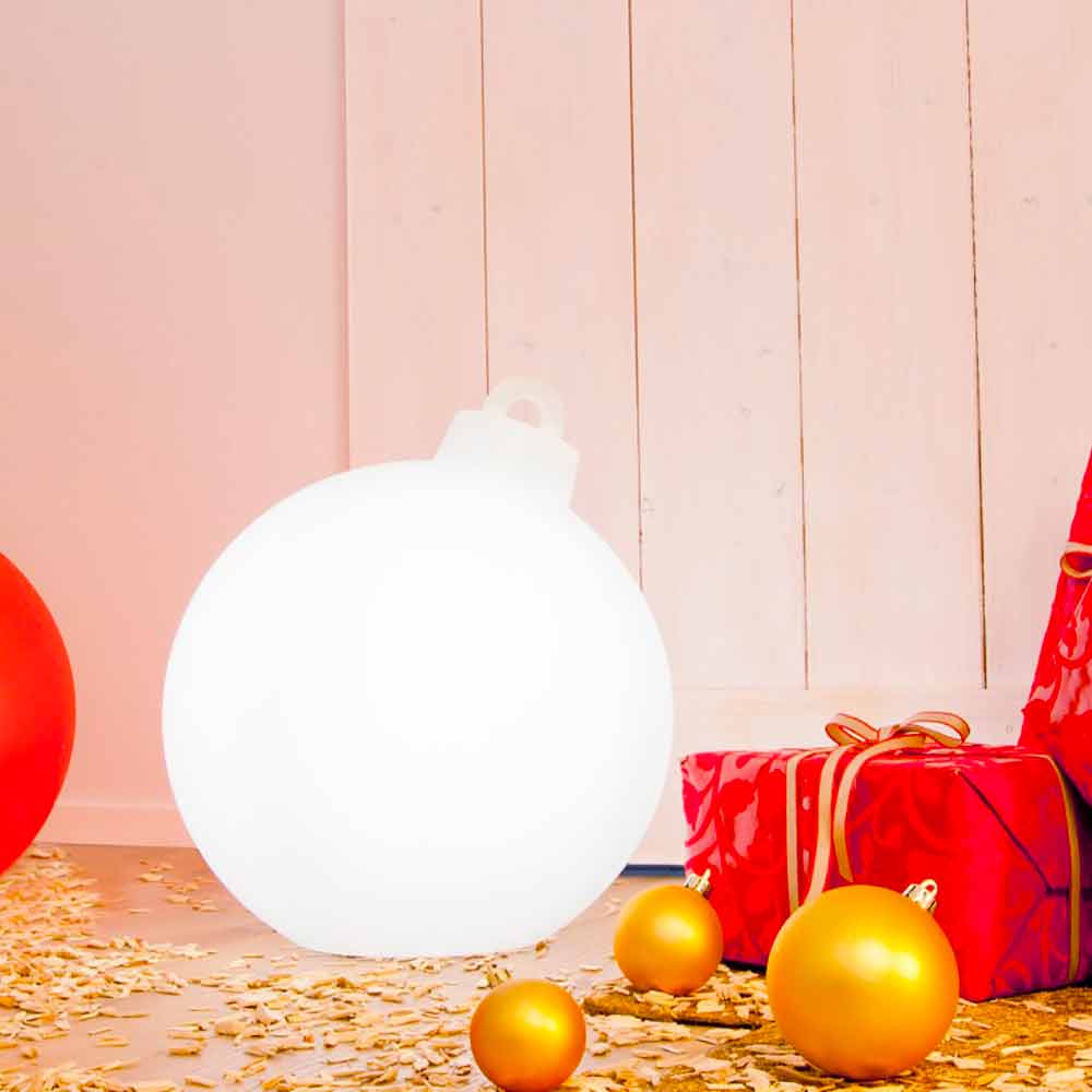 Llambë dyshemeje në formën e një topi Krishtlindjesh në polietilen të bardhë, lidhje LED shumëngjyrësh, diellore ose E27 për brenda ose jashtë.