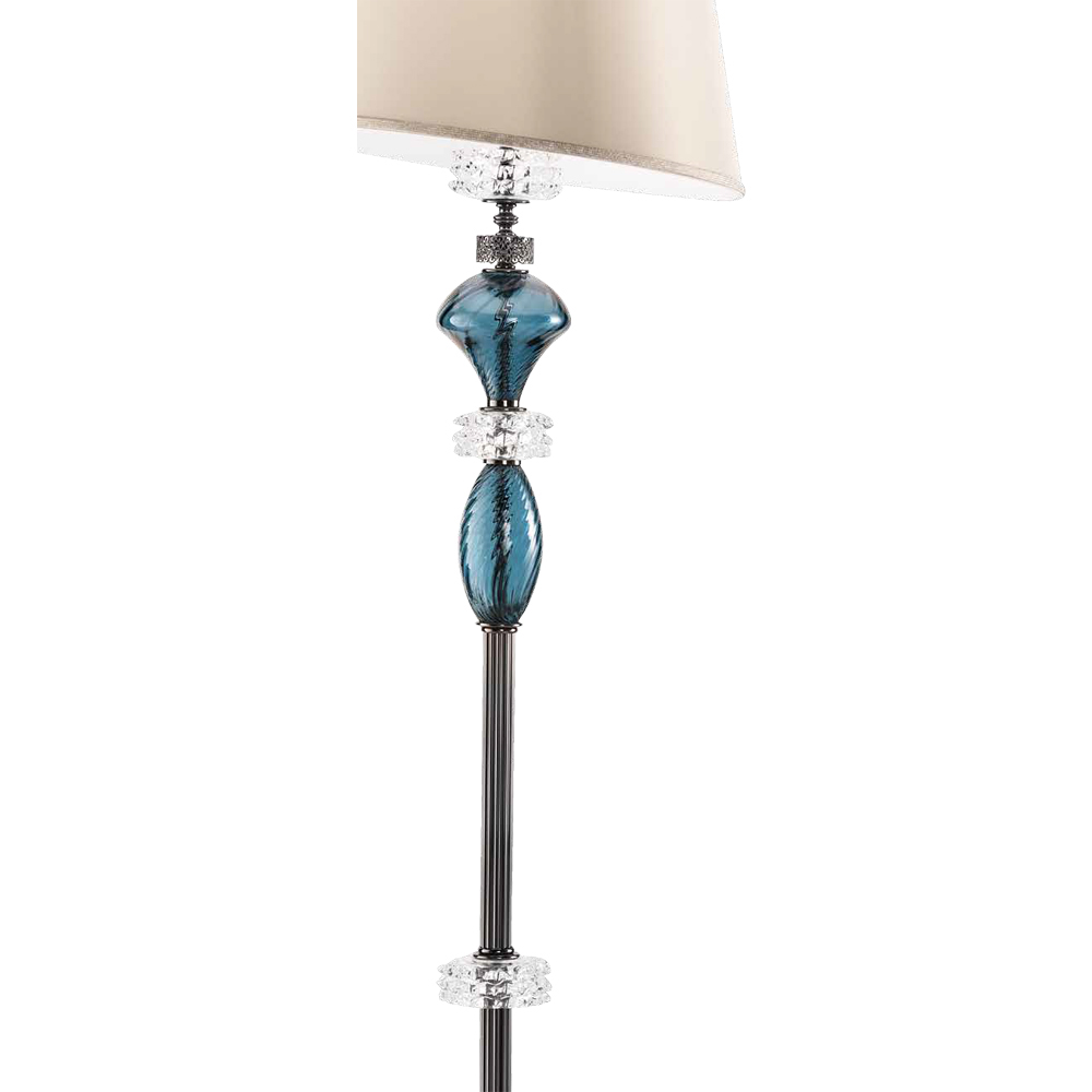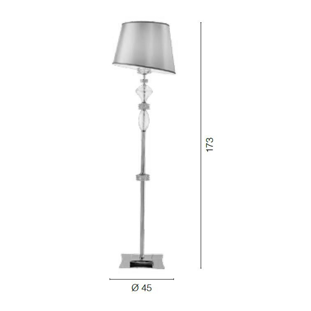 Llamba e dyshemesë me abazhur është një aksesor ndriçimi luksoz tërësisht i prodhuar në Itali në xham të punuar me dorë të cilësisë më të lartë. Ajo që e bën atë unike dhe madhështore janë detajet dhe përfundimet metalike që i japin jetë një stili klasik të dikurshëm, sharmi i të cilit bëhet protagonist në hapësirën e destinacionit.