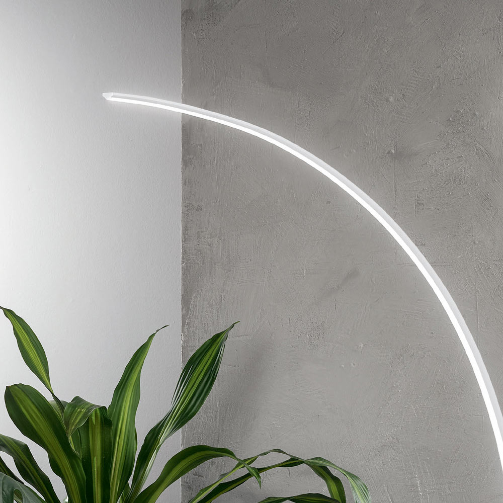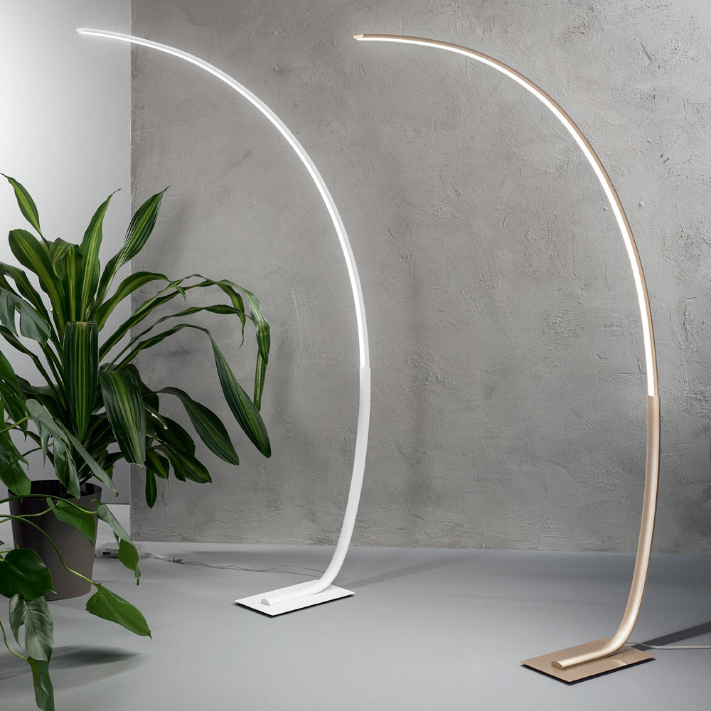 Llamba moderne e dyshemesë e bërë tërësisht prej metali të lyer me burim drite LED që zvogëlohet . Një stil veçanërisht i matur dhe minimal që përshtatet në mënyrë të përkryer me çdo situatë stilistike moderne në të cilën tërheq vëmendjen falë estetikës së saj të thjeshtë dhe të pastër, por në të njëjtën kohë origjinale dhe avangarde. E veçanta e tij përfaqësohet nga një anë e shënuar funksionale e cila ju lejon të siguroni një ndriçim të përhapur dhe cilësor ideal për krijimin e atmosferave mikpritëse brenda zonës tuaj të jetesës.