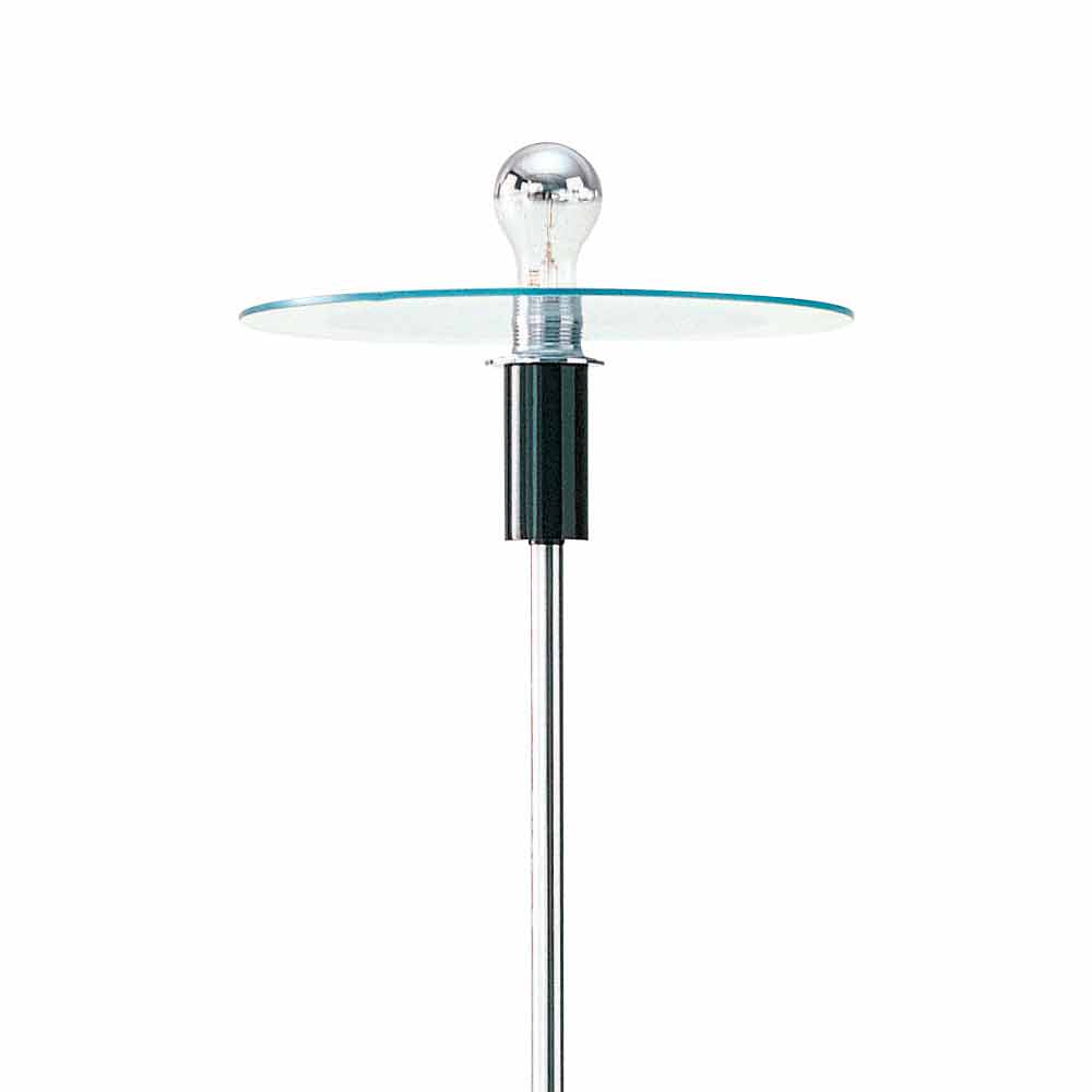 Llambë dyshemeje moderne me strukturë të kromuar dhe pjatë xhami Prodhuar në Itali.