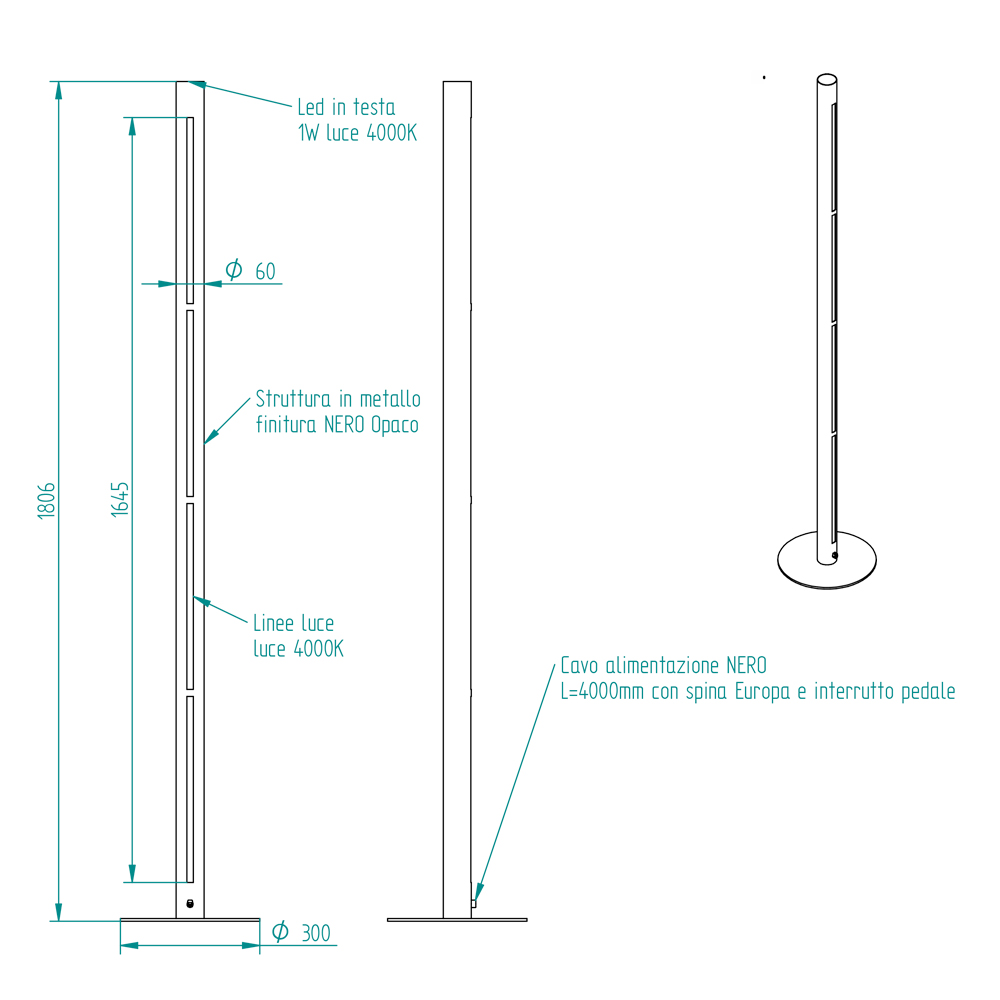 Llambë dyshemeje metalike me ndriçim të dyfishtë vertikal, dizajn modern Prodhuar në Itali.