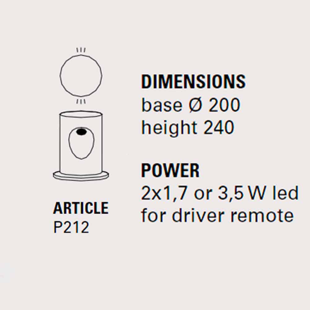 Dimensionet : baza Ø200 x H 240 Sigurohet me llambë LED 230 2 x 1,7W IP 65, kënd prej 3000K prej 95 ° NB : shoferi i pa përfshirë