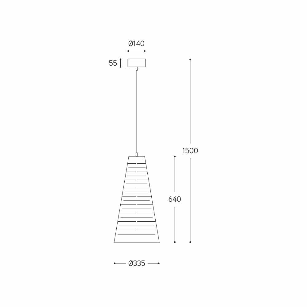 | Masat e llambës | Diametri 335 x H 640 mm; H gjithsej me kabllo dhe rozetë 1500 mm |