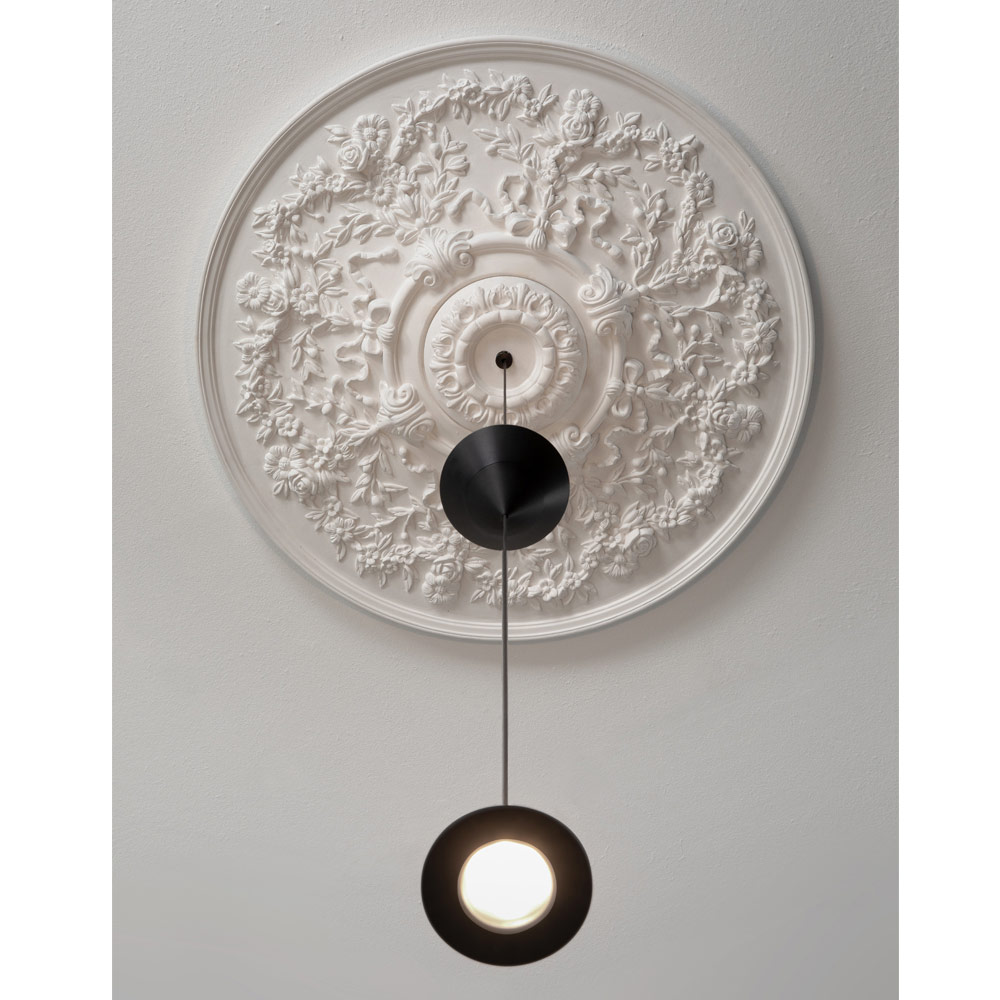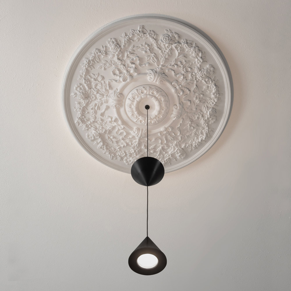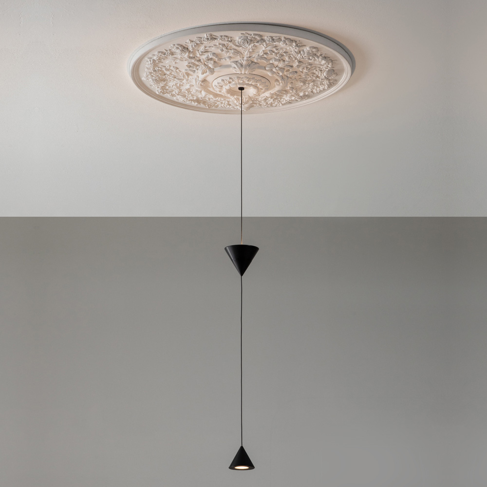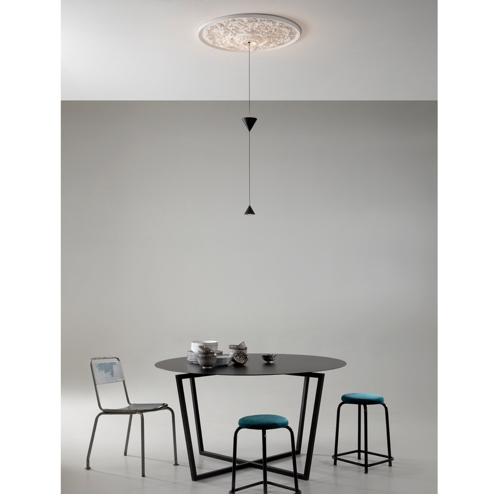 Llambë e varur e projektuar në suva të bardhë dhe 2 kone prej alumini të zi - Tesera