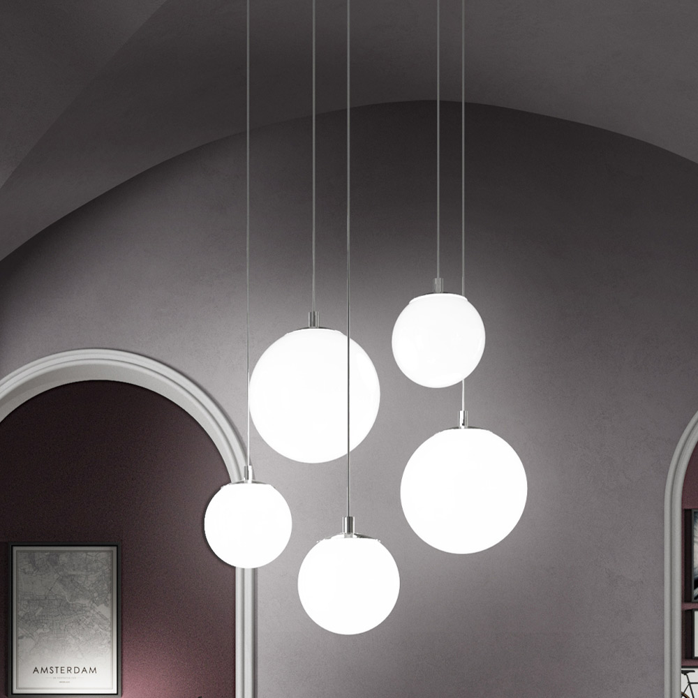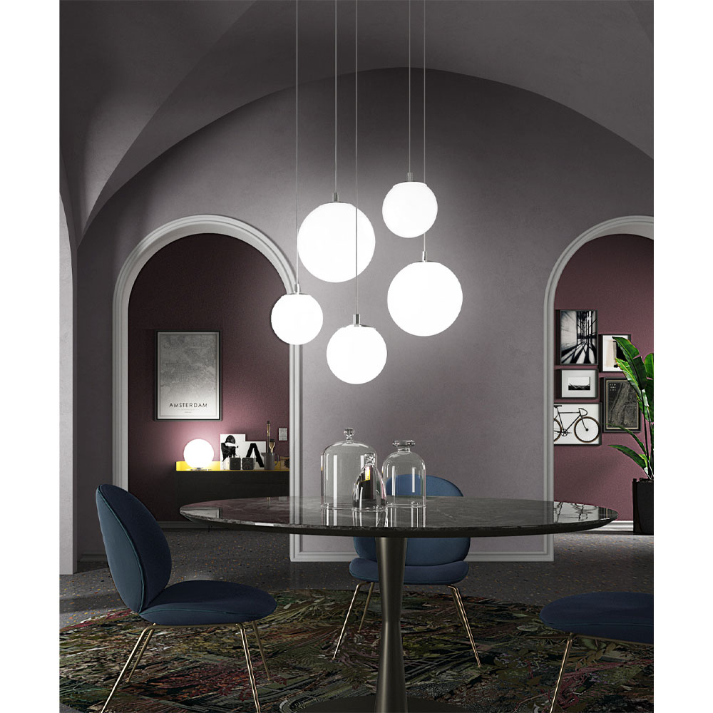 prej xhami me kasë të fryrë me dorë dhe i bërë unik nga lojërat e mrekullueshme të dritës të krijuara nga forma sferike e difuzorit dhe përpunimi i veçantë i xhamit.
