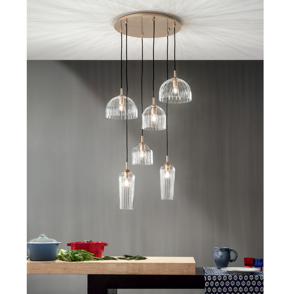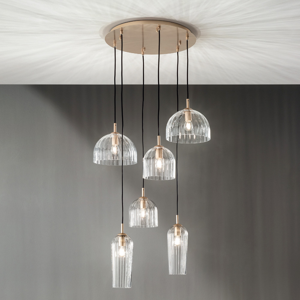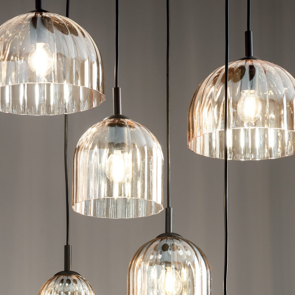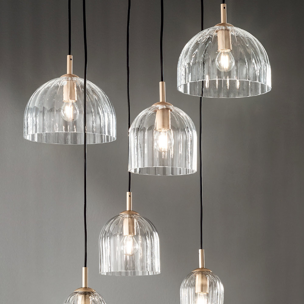 Llambëvarëse me strukturë metalike të lyer dhe abazhur me xham me vija të mbushura me kabllo të rregullueshme në gjatësi. Një element dekorativ me një estetikë të rafinuar dhe një shpirt modern i krijuar për të ndriçuar çdo kuzhinë, dhomë ngrënie apo dhomë ndenjeje në mënyrë ekskluzive dhe me karakter, i karakterizuar nga një dizajn bashkëkohor dhe avangard . Abazhurët e mrekullueshëm të xhamit me fryrje të prodhuara në forma dhe madhësi të ndryshme i japin llambës personalitet dhe nënvizojnë elegancën e saj. Përfundimet e propozuara, nga ana tjetër, plotësojnë estetikën përfundimtare të produktit, duke shënuar veçantinë e tij dhe duke krijuar një efekt të fortë skenografik .