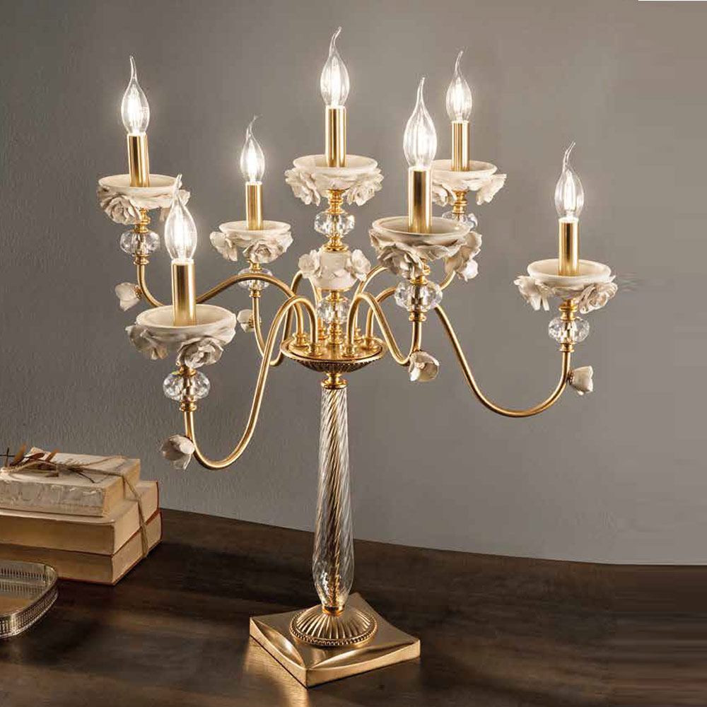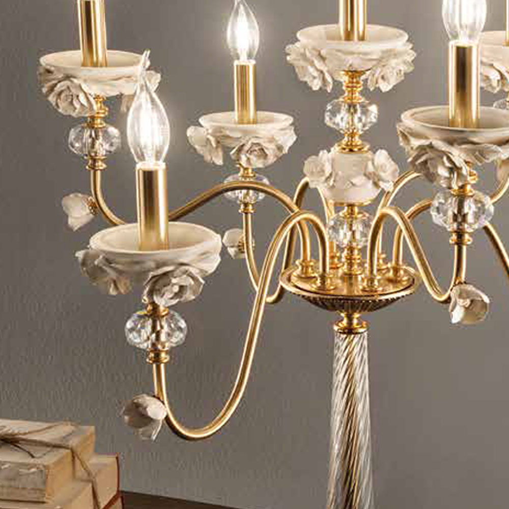 Llamba flambeaux me 7 drita prej porcelani dhe xham të fryrë, luksoze e prodhuar në Itali.
