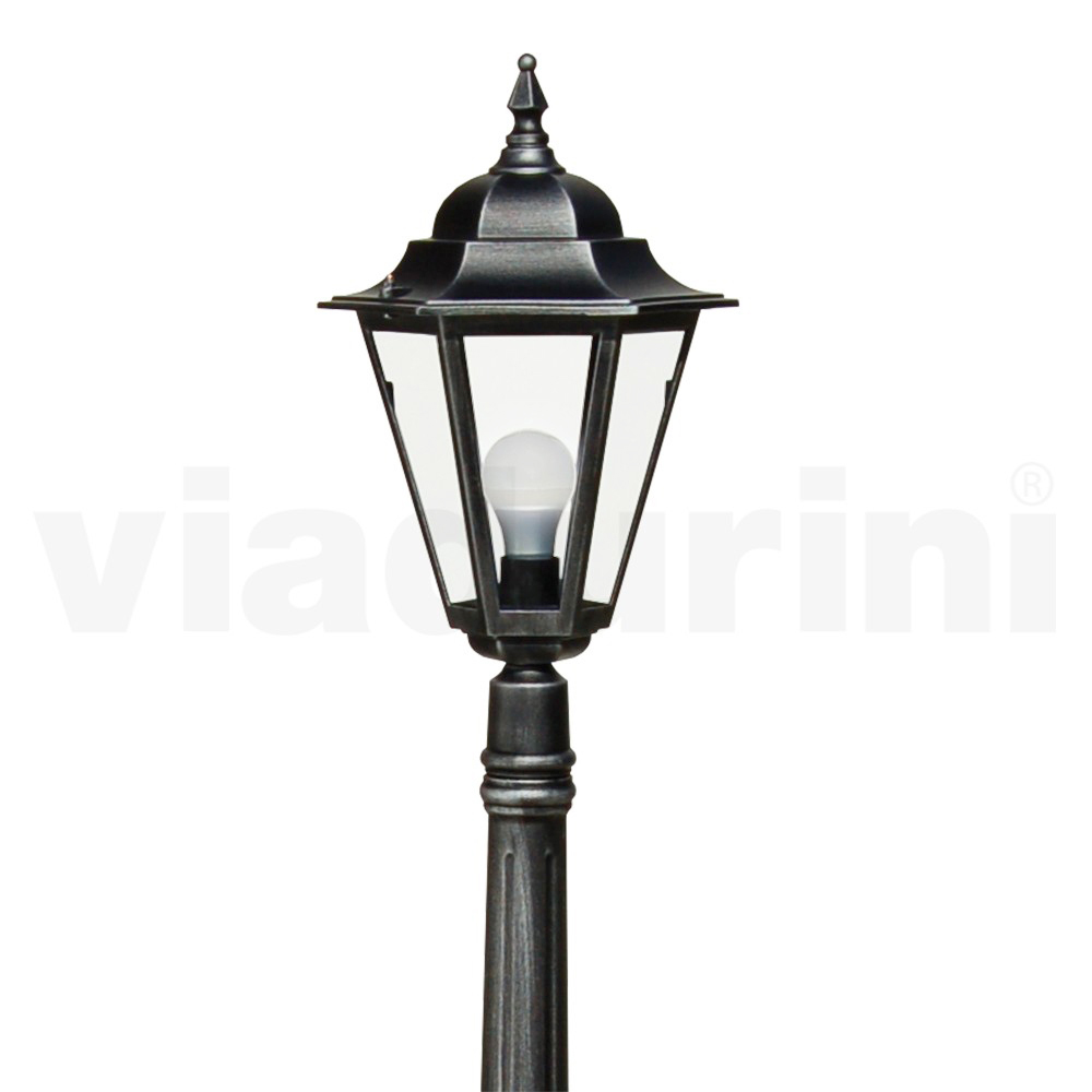 Kjo llambë elegante e jashtme prej alumini e derdhur kombinon sofistikimin dhe qëndrueshmërinë në një dizajn që kap thelbin e shijes klasike. Finitura e gjithanshme dhe e përjetshme e bën këtë shtyllë llambash një plotësues ideal për çdo lloj ambienti, nga më tradicionali deri tek ai modern. Linjat e holla të strukturës ngrihen me hijeshi, duke arritur kulmin me një fanar që shpërndan një dritë të ngrohtë dhe mikpritëse, ideale për të krijuar një atmosferë ndjellëse në çdo hapësirë të jashtme. Me pamjen e tij elegante dhe ndërtimin e qëndrueshëm, ky shtyllë llambash është zgjidhja perfekte për ata që duan të zbukurojnë dhe ndriçojnë në mënyrë elegante kopshtet, parqet apo rrugët e rrugës.