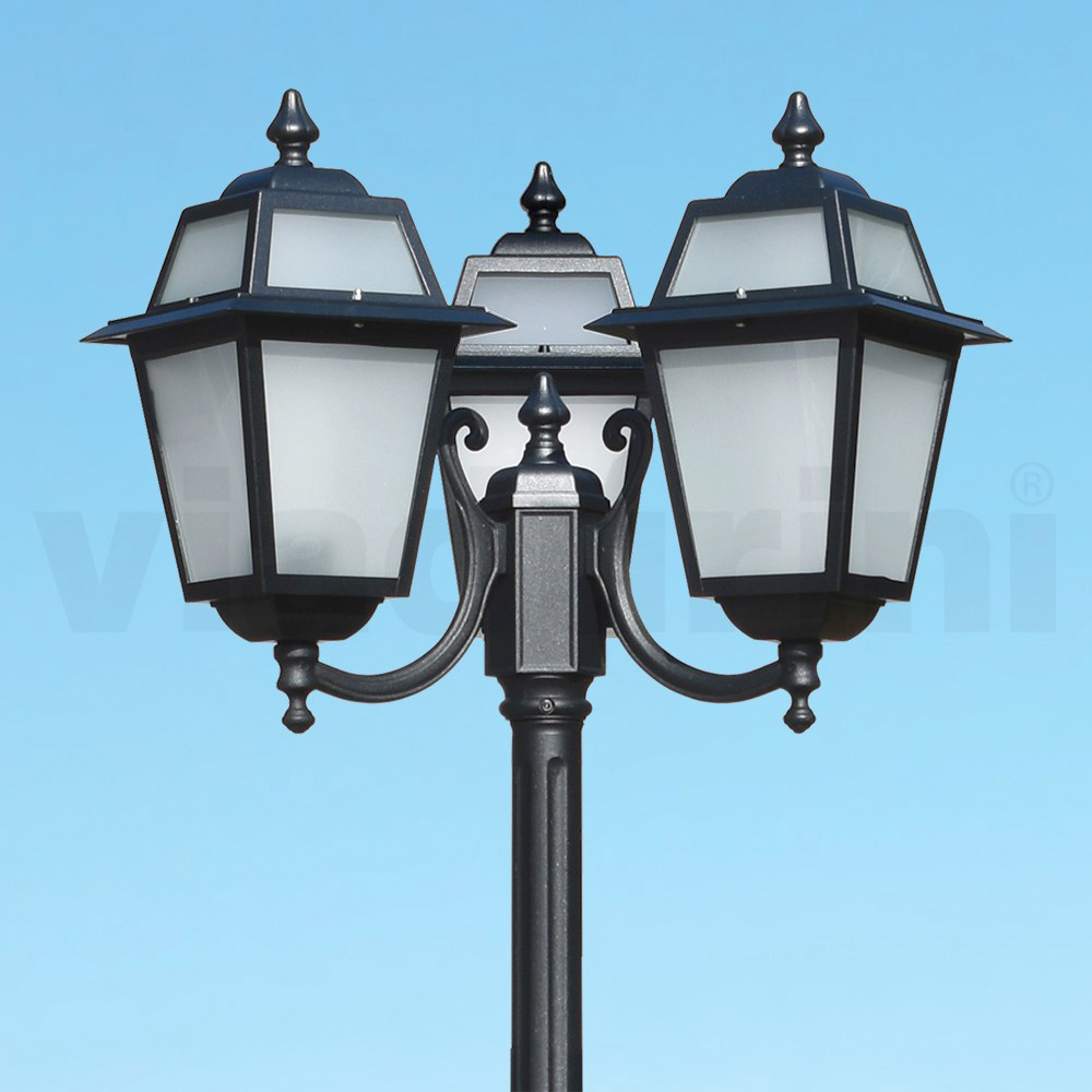 Kjo llambë rrugore prej alumini të derdhur me përfundimin e saj antracit është një zgjedhje elegante për çdo ambient të jashtëm. Me një dizajn klasik dhe elegant, ai përmban detaje të përpunuara që ngjallin një atmosferë të kohëve të shkuara. 3 fenerët, me vëmendje në detajet më të vogla, përhapin një dritë të ngrohtë dhe të butë, ideale për të krijuar një shteg të ndritshëm në kopshtin tuaj ose për të kufizuar në mënyrë klasike një zonë relaksi në natyrë. Fortësia dhe bukuria bashkohen në këtë llambë rruge, e krijuar për të qëndruar në kohë dhe për t'i rezistuar agjentëve atmosferikë. Elegant dhe funksional , do të jetë nënshkrimi i ndritshëm i hapësirës suaj të jashtme.