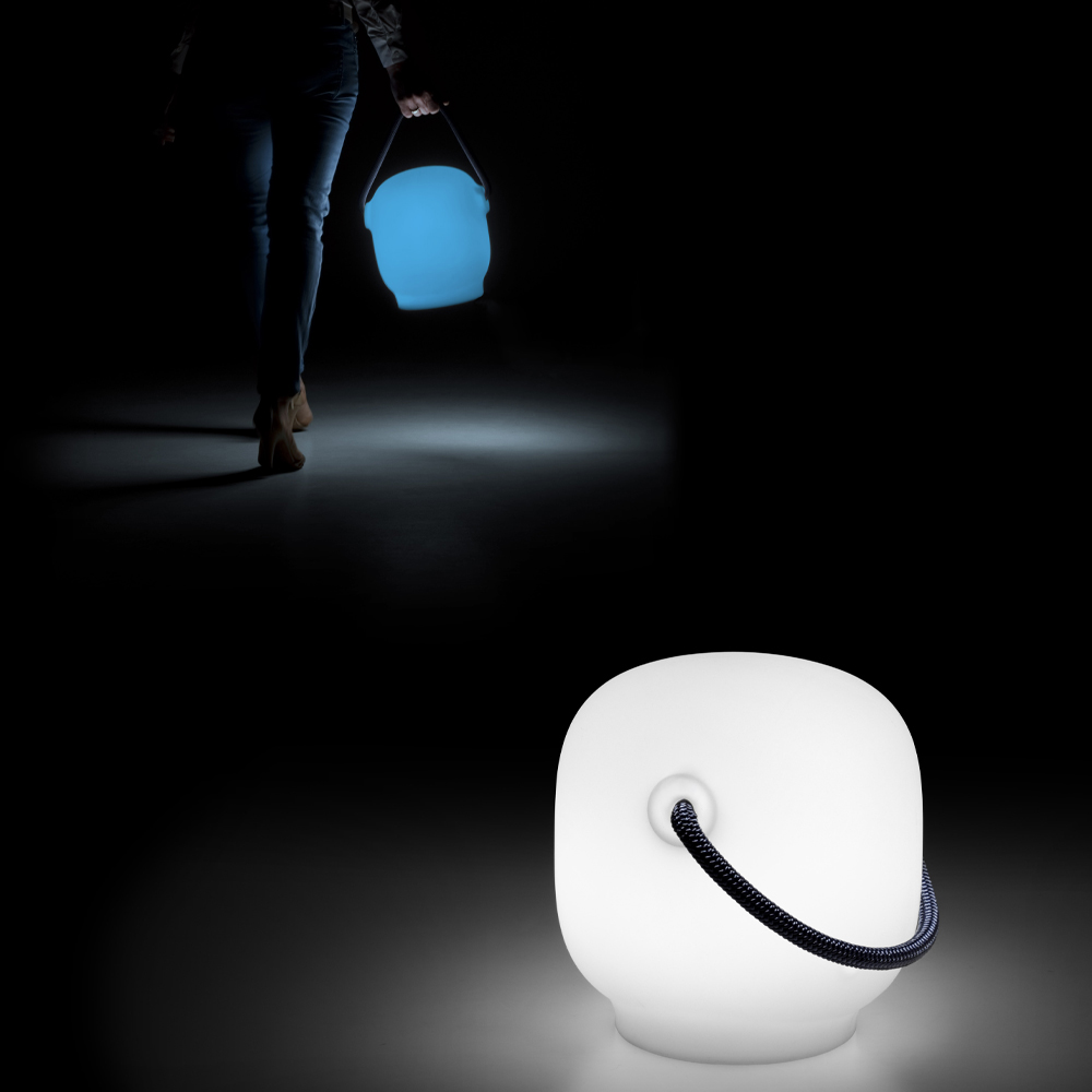 Llambë e jashtme e prodhuar tërësisht në Itali në polietileni mat të përfunduar e pajisur me dorezë dhe çantë praktike të dritës RGB LED . Një llambë portative me dimensione të vogla që krijon një dritë atmosferike në çdo kontekst stilistik. Veçantia e tij është furnizimi me energji nëpërmjet një baterie të brendshme që lejon, së bashku me dorezën e litarit me ngjyrë praktike , të lehtësojë lëvizjen, duke krijuar kështu një fener të vërtetë të rimbushshëm. Dizajni i tij modern dhe avangardë e bën atë një zgjidhje perfekte si për hapësirat e jashtme shtëpiake ashtu edhe për mjediset me kontratë në të cilat mund të luani me stile dhe estetikë të ndryshëm për një rezultat ekskluziv dhe të rafinuar .