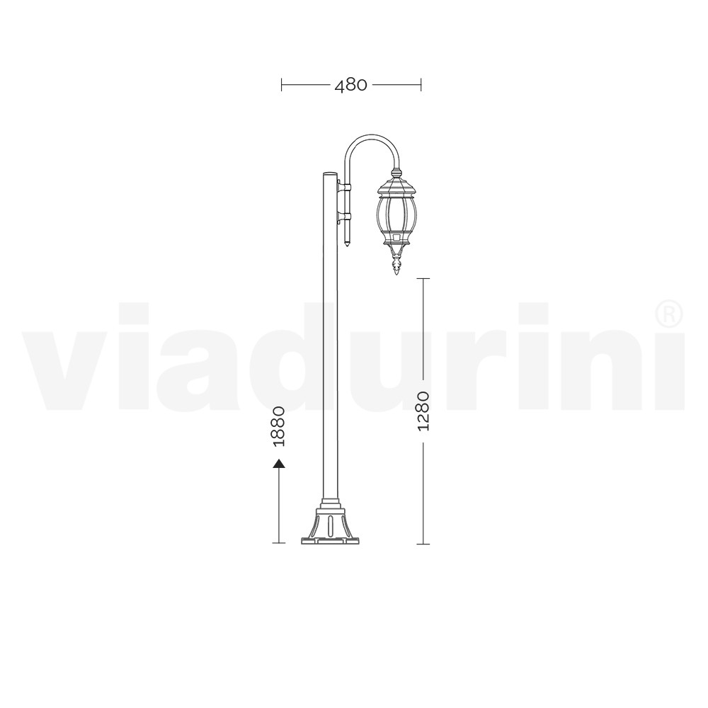 Llamba kopshti e prodhuar nga prodhimi 100% Made in Italy nga alumini i derdhur ne ngjyre gri antracit me difuzer polikarbonat transparent . I kompletuar me vida inox. Eleganca dhe stili vintage e bëjnë këtë pjesë të mobiljeve një zgjidhje perfekte për arredimin e hapësirave tuaja të jashtme në mënyrë të saktë dhe ekskluzive falë detajeve të veçanta që nënvizojnë veçantinë e saj. Ideale për ambiente të jashtme si kopshte, rrugë, vendkalime apo hapësira të jashtme me kontratë si bare dhe restorante.