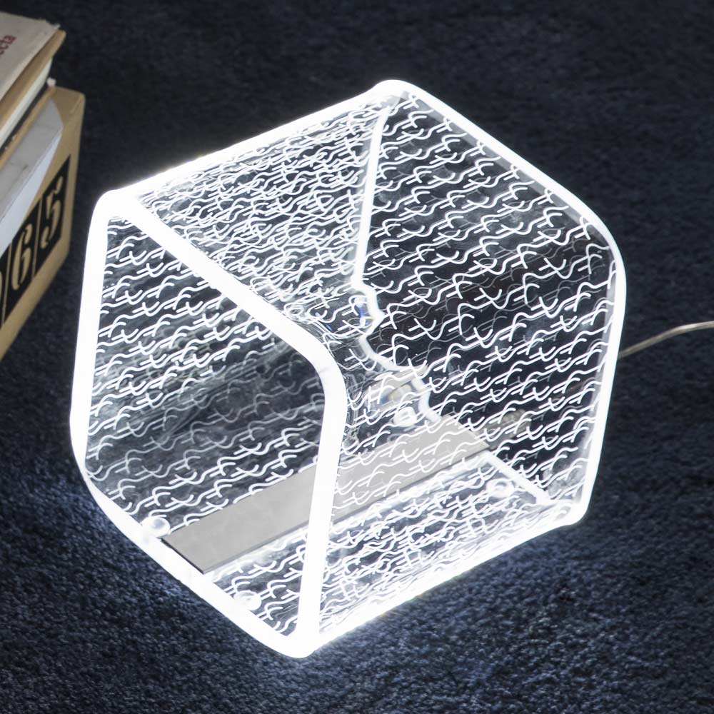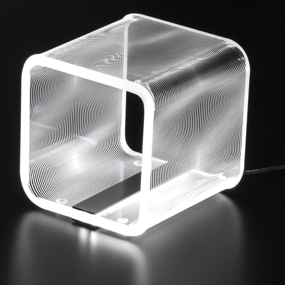 Llamba tavoline me shirit led me katrore ne akrilik transparent 2 permasa, prodhim Italian.