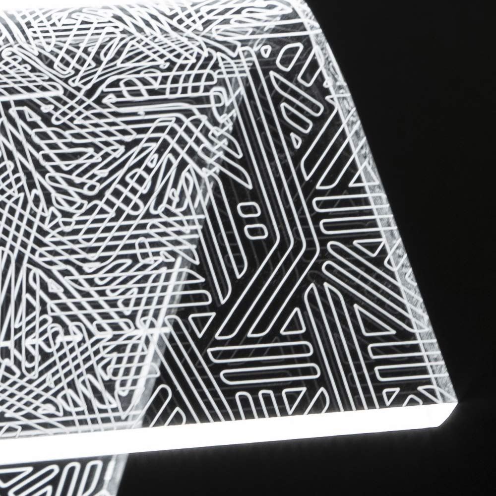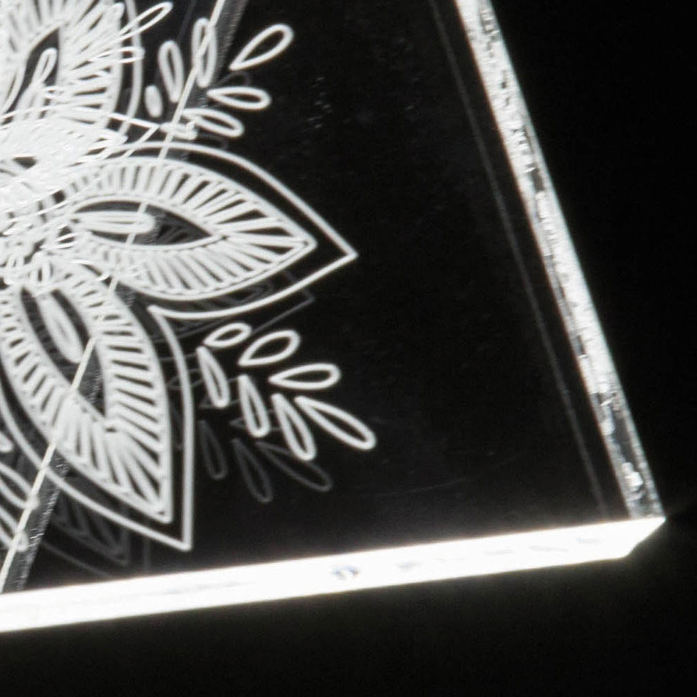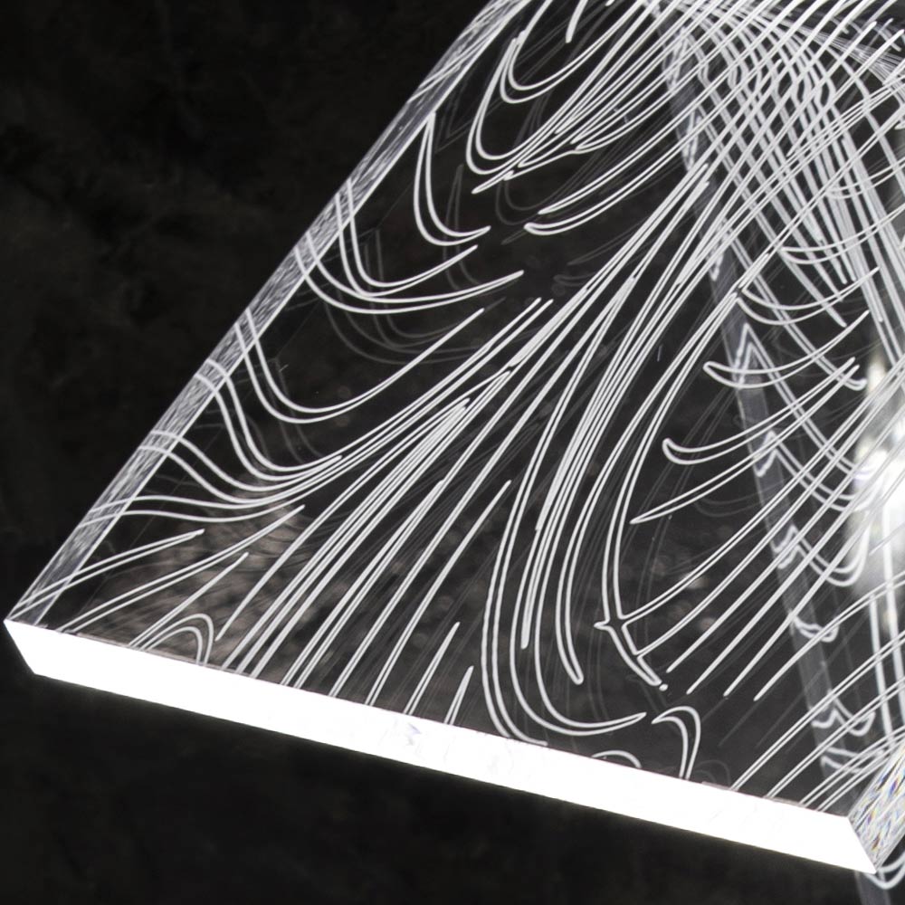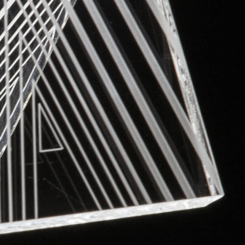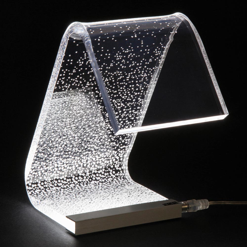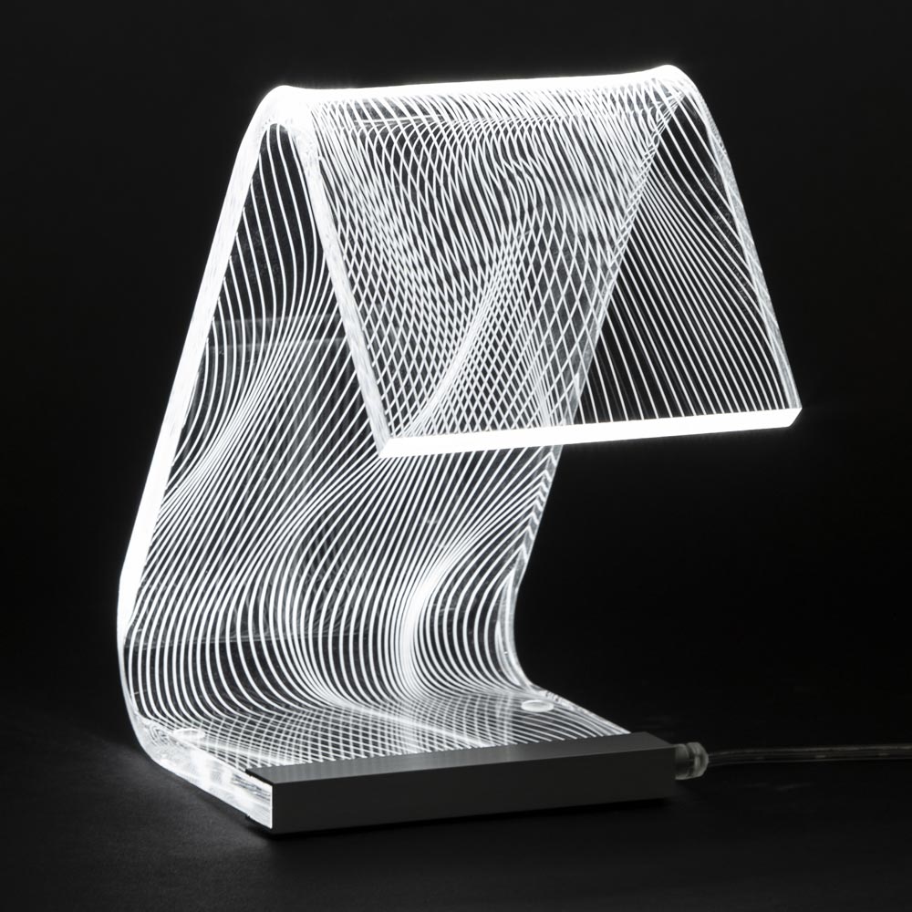 Llamba tavoline ne kristal akrilik transparent me dekorime laser, 2 permasa prodhim Italie.