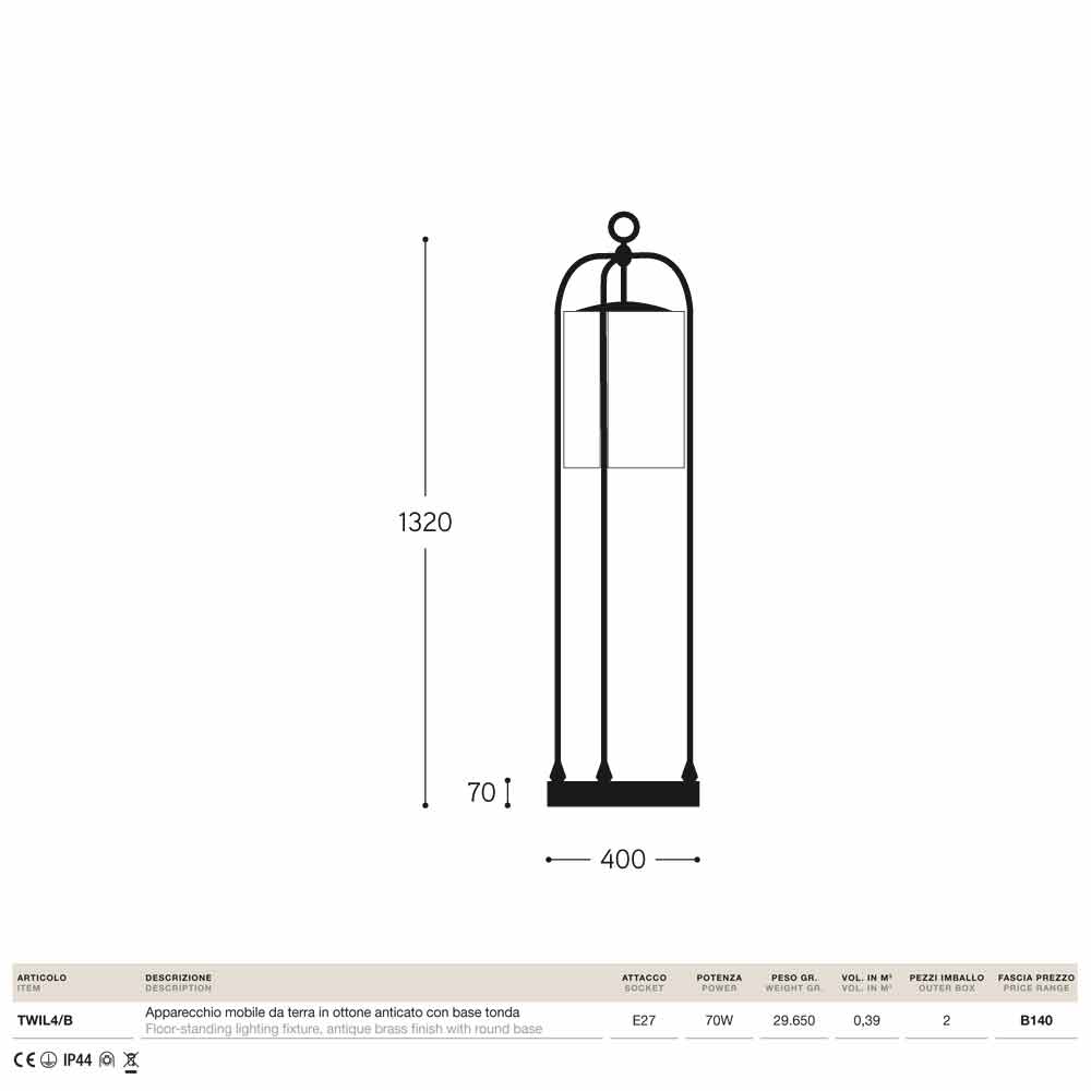 Llambë dyshemeje moderne në natyrë Pitosforo nga Aldo Bernardi, e bërë prej bronzi dhe metakrilate.