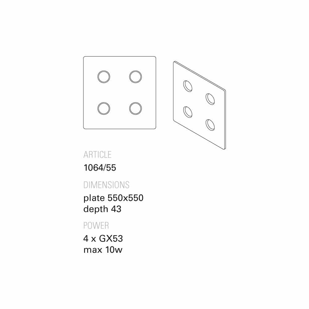 Llamba të kërkuara: 4 x GX53 max 10w (nuk përfshihen në çmim).
